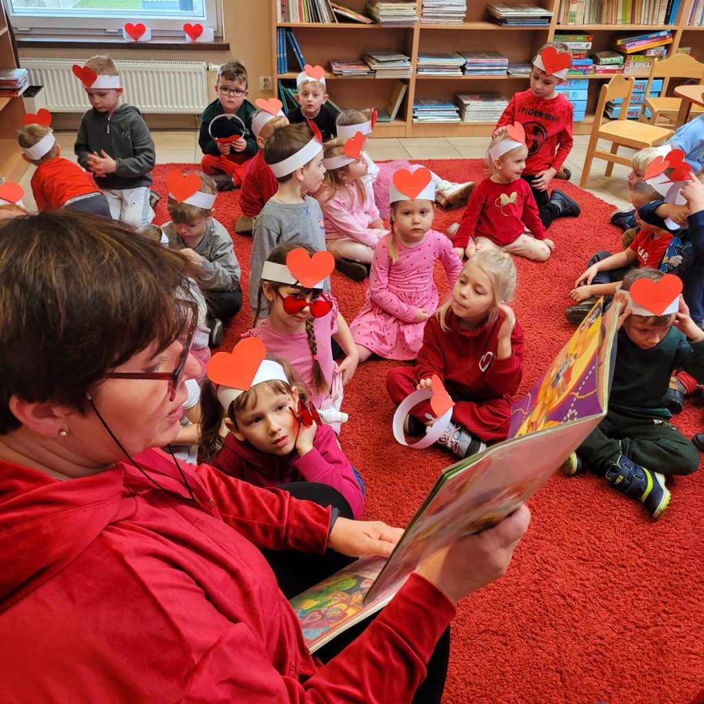 11 lutego uczestniczyliśmy w specjalnym walentynkowym czytaniu w bibliotece, które prowadziła bibliotekarka – Pani Iwonka. Podczas spotkania dzieci miały okazję wysłuchać książek o tematyce miłości, przyjaźni i relacji między rówieśnikami.