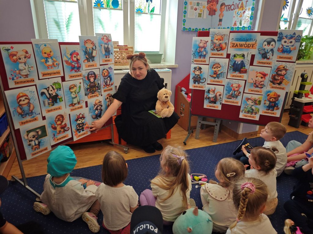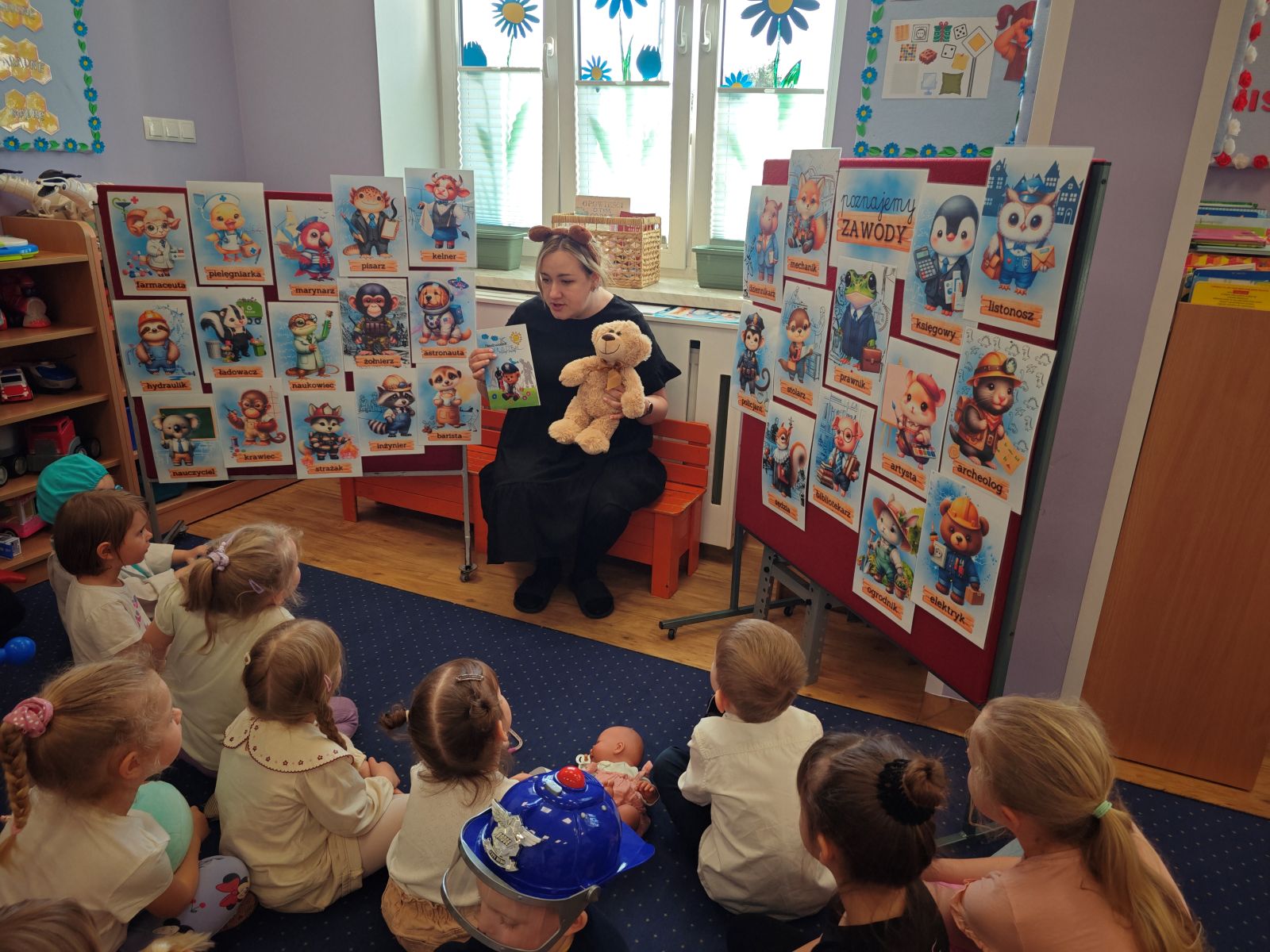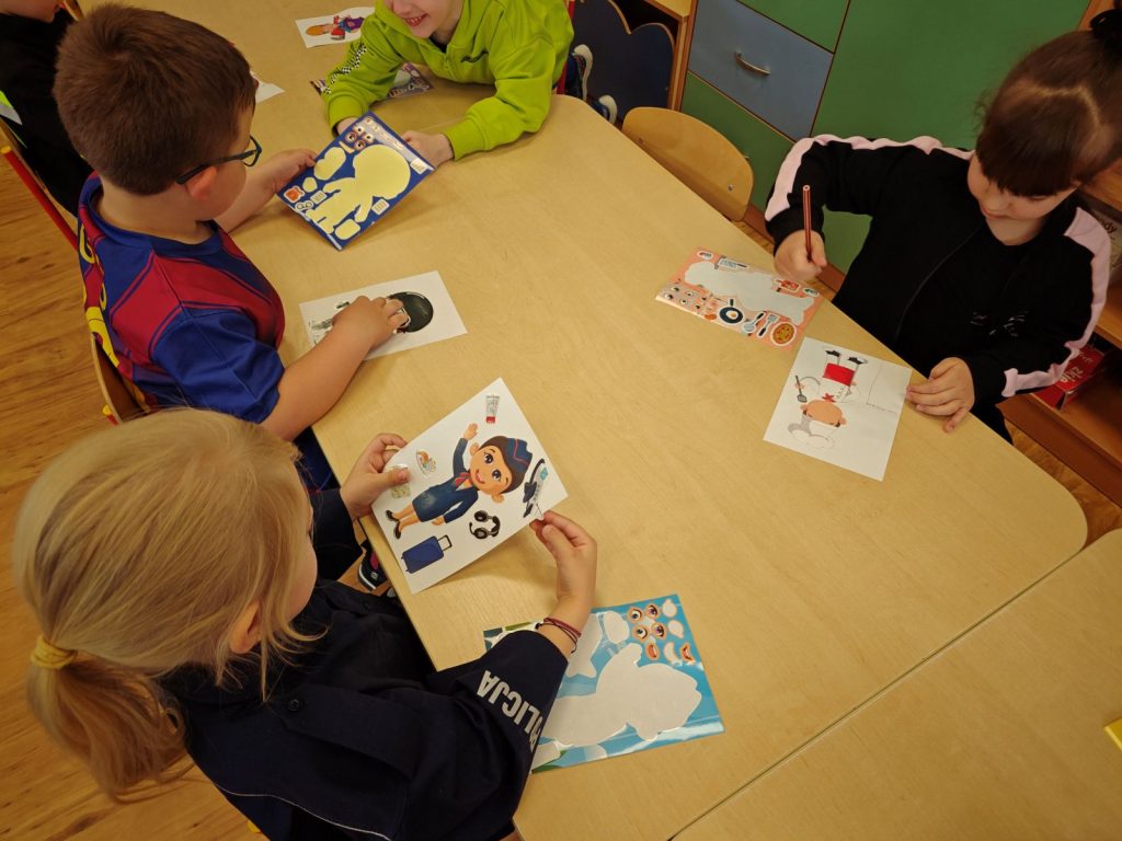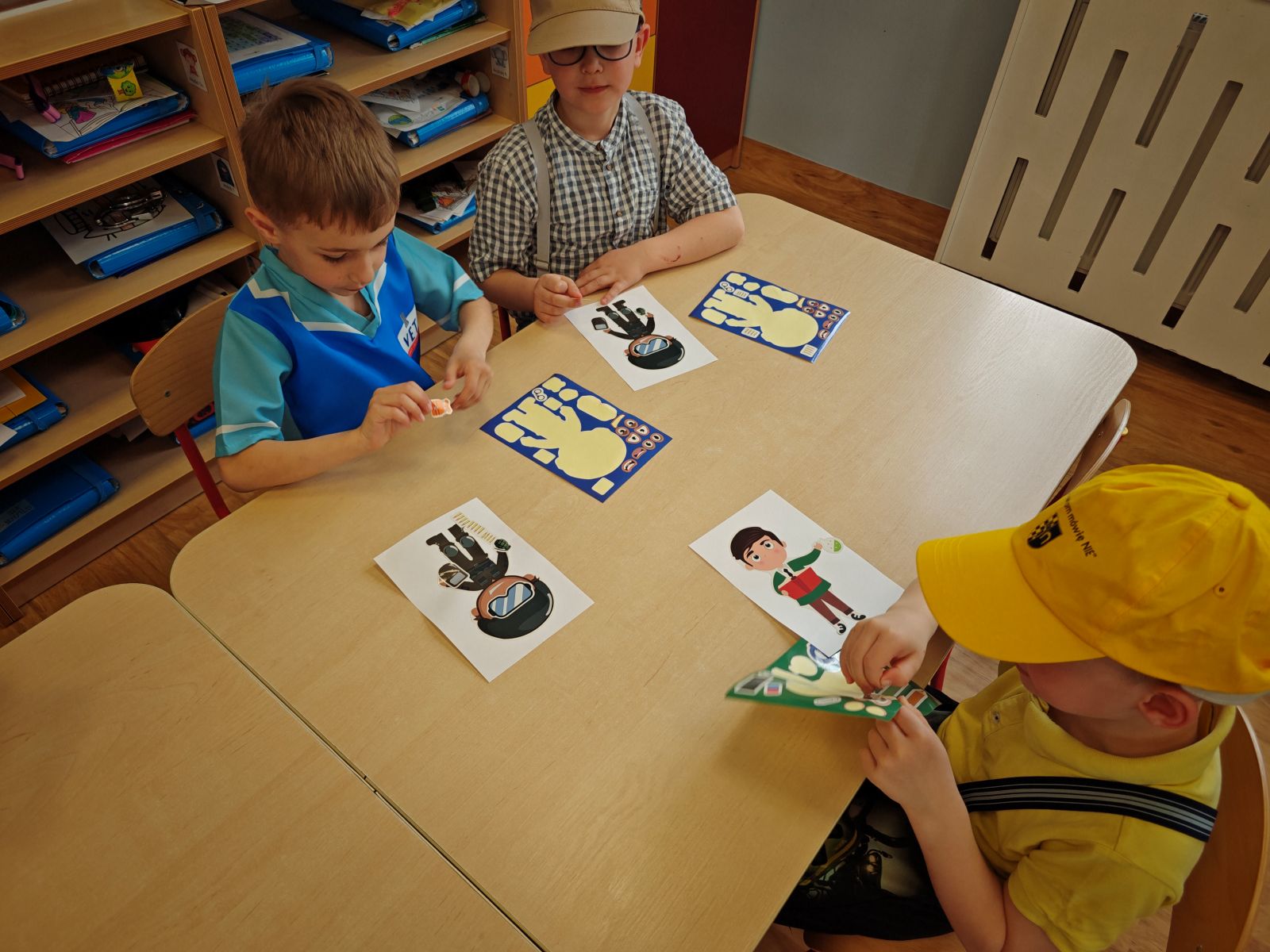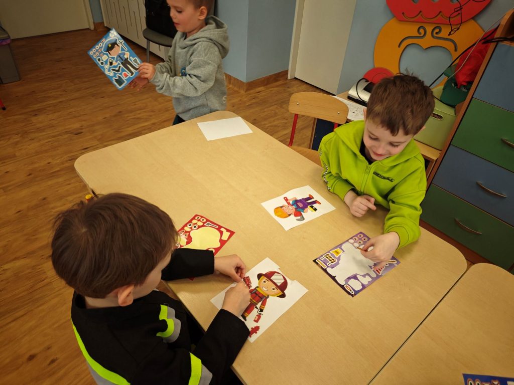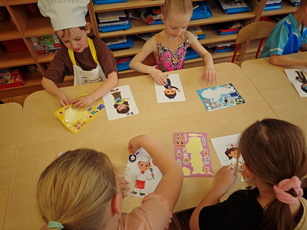 Nie zabrakło radosnych zabaw ruchowych oraz tańców przy muzyce, które wyzwoliły w nas mnóstwo pozytywnej energii! 💃🎶 Na zakończenie dzieci wykonały piękne prace plastyczne, wyklejając postacie związane z ich ulubionymi zawodami. 🎨✂️