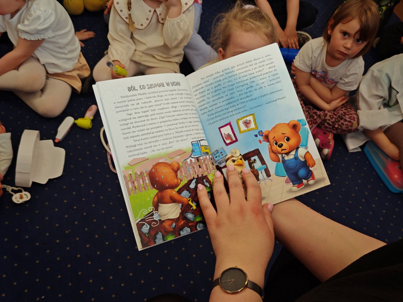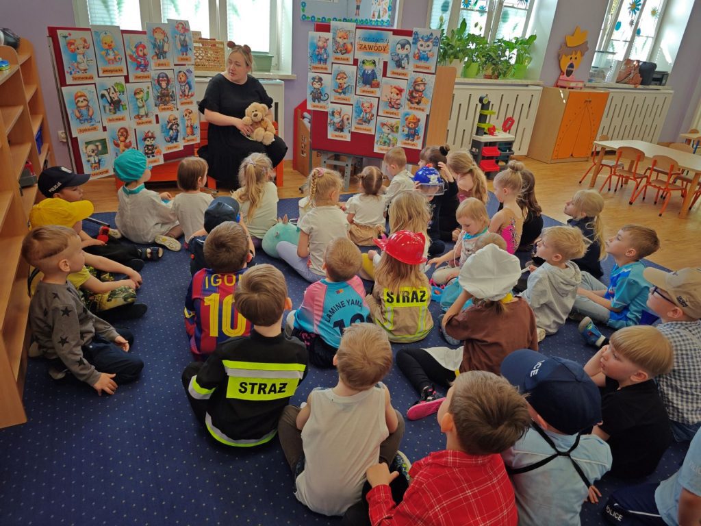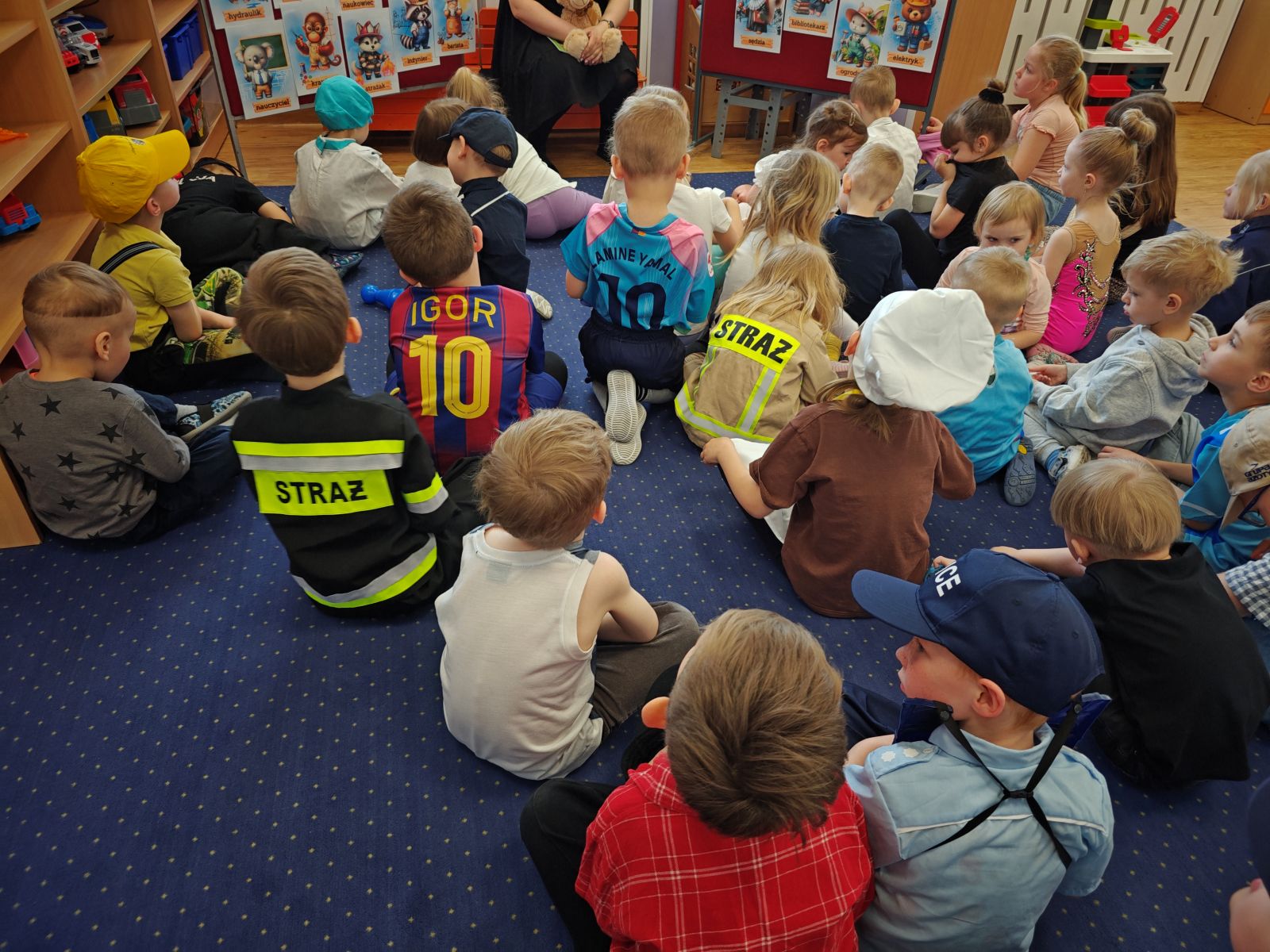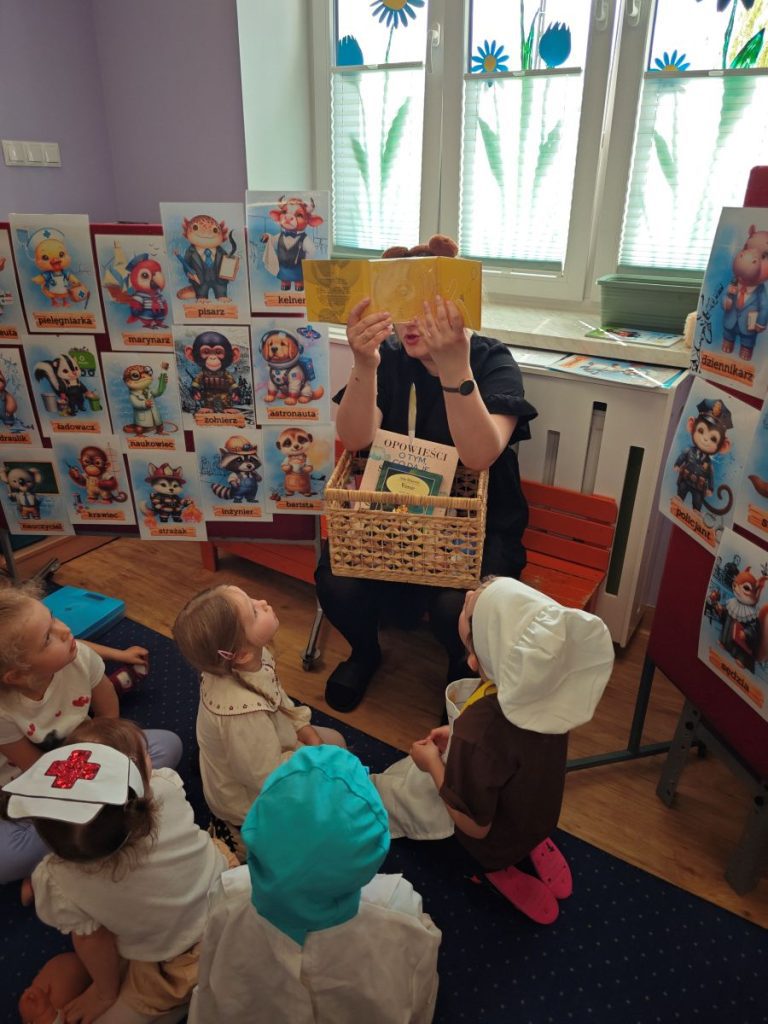W ramach Narodowego Programu Rozwoju Czytelnictwa odbył się niezwykły „Bajkowy Bal”. 📚🎈 Poznaliśmy sympatycznego Niedźwiadka Władka i z zaciekawieniem wysłuchaliśmy bajki pt. „Ból, co szumiał w uchu”. 🐻📖 Wspólnie rozwiązywaliśmy zagadki i rozmawialiśmy o tym, jak ważna jest praca każdego człowieka – od krawca i sprzedawcy, po lekarza czy strażaka. 🔍👔