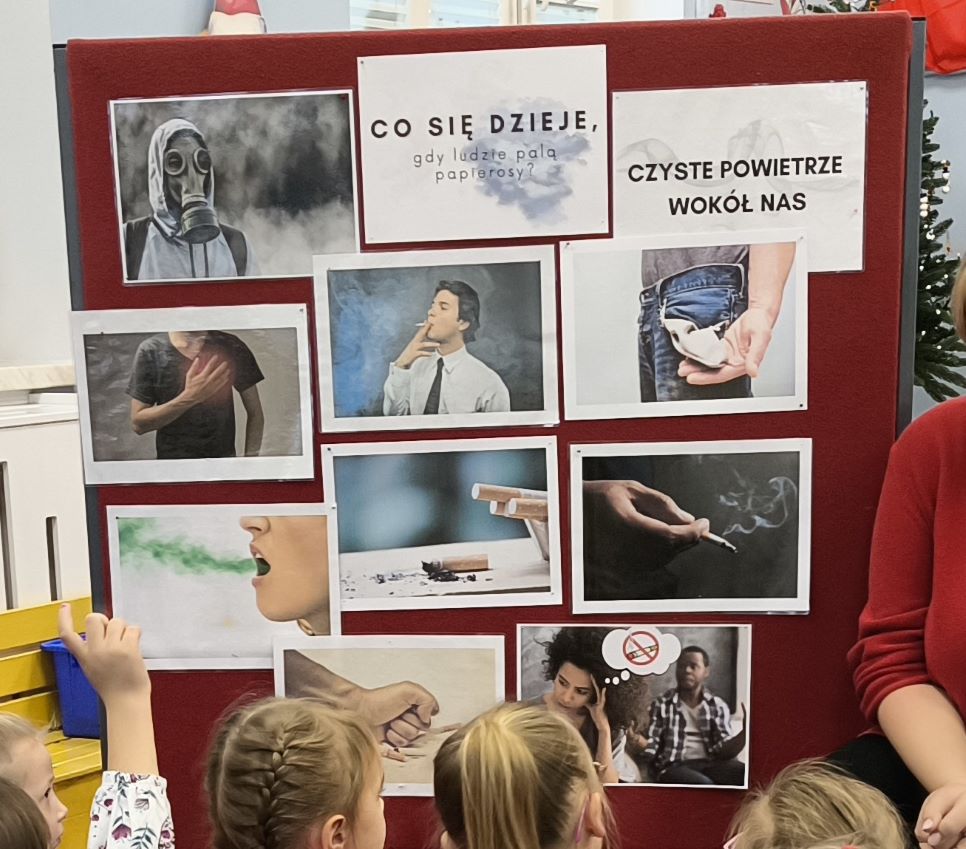 Z pomocą ilustracji, zabaw edukacyjnych oraz rozmów dzieci dowiedziały się, dlaczego warto unikać przebywania w zadymionych miejscach oraz jak mogą reagować, gdy ktoś w ich otoczeniu pali papierosy. Zajęcia były również okazją do rozwijania empatii – dzieci uczyły się, że troska o własne zdrowie i środowisko to ważna część codziennego życia.