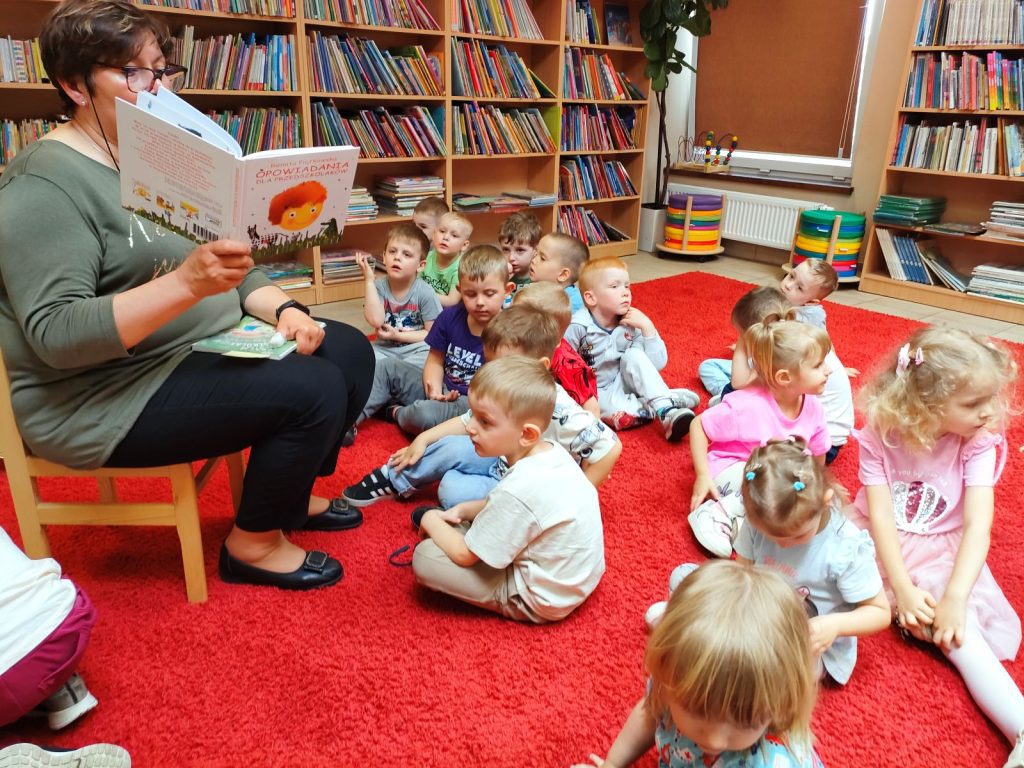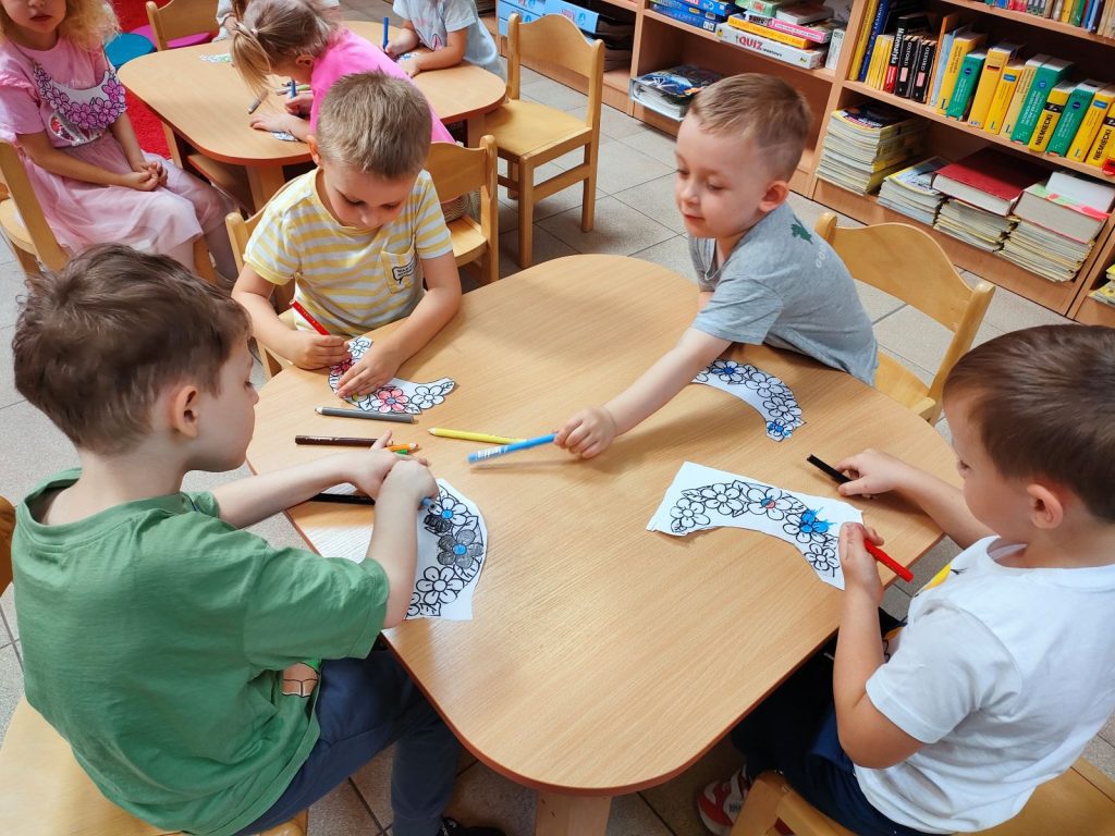 Zaraz po śniadaniu, pełni energii i entuzjazmu, nasza grupa maluszków wyruszyła do biblioteki, gdzie czekała na nas Pani Iwonka. Każda wizyta w tym przytulnym miejscu to dla nas prawdziwe święto, pełne niespodzianek i nowych odkryć. Tego dnia Pani Iwonka przygotowała dla nas coś specjalnego. Zbliżał się Dzień Mamy i z tej okazji przeczytała nam piękne opowiadania poświęcone temu wyjątkowemu świętu. ❤️Historie te były pełne ciepła, miłości i wdzięczności, przypominając nam, jak ważne są nasze mamy w naszym życiu. Po wysłuchaniu opowiadań, mieliśmy okazję przyjrzeć się różnorodnym książeczkom, które Pani Iwonka dla nas przygotowała. Każda z nich kryła w sobie kolorowe ilustracje i ciekawe historie, które pobudzały naszą wyobraźnię i zachęcały do dalszego czytania. Najbardziej ekscytującą częścią naszego spotkania było tworzenie prezentu dla naszych mam. Z pomocą Pani Iwonki wykonaliśmy piękne łańcuszki. Każdy z nas kolorował swoje elementy, a potem Pani Iwonka nawlekała je na niteczkę, tworząc unikalne i kolorowe dzieła sztuki.❤️