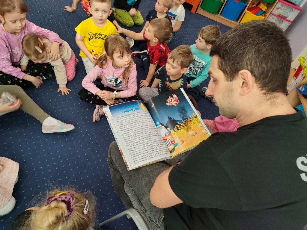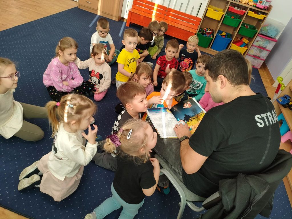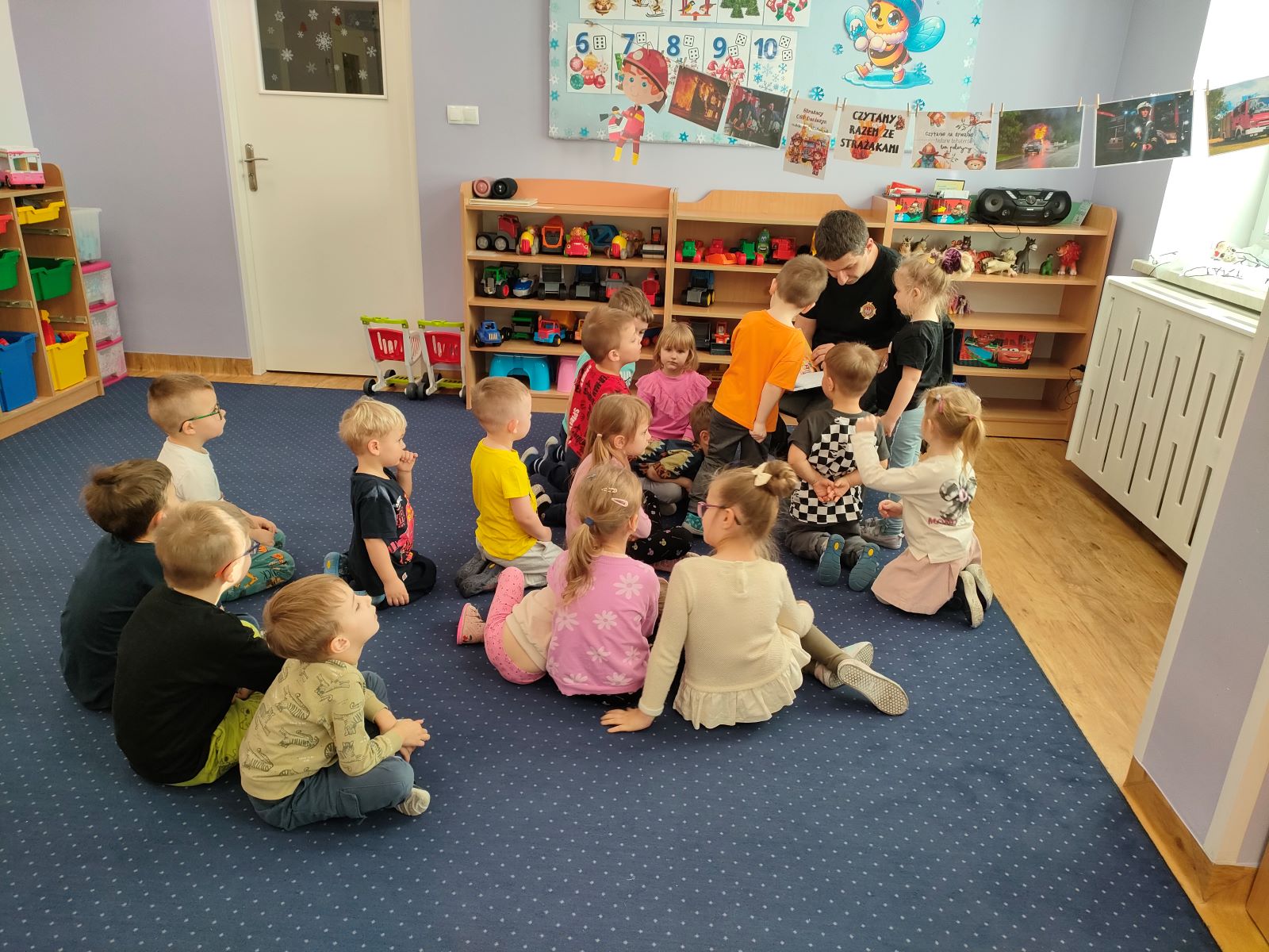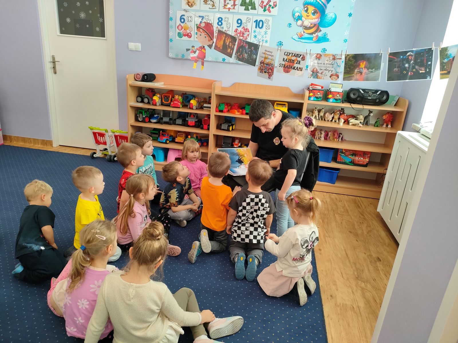 Dziś odbyło się kolejne inspirujące spotkanie w ramach projektu „Czytanie na dywanie – historie bohaterów bez peleryny”. Tym razem mieliśmy przyjemność gościć Pana Krystiana, który z pasją i zaangażowaniem wprowadził nas w dalsze losy bohaterów z książki autorstwa Pani Mai Buczek. Pan Krystian Talaga to nie tylko strażak z Ochotniczej Straży Pożarnej w Daniszynie oraz OSP Cegły, ale również dumny tata naszego Antosia. Jego doświadczenia i poświęcenie w pracy strażaka czynią go prawdziwym bohaterem bez peleryny. Podczas spotkania Pan Krystian przeczytał nam fascynującą historię Sowy Magdaleny i jej nocnego patrolu. Opowieść ta przyciągnęła uwagę wszystkich słuchaczy, którzy z zaciekawieniem śledzili przygody mądrej sowy. Dzieci były zachwycone, mogąc zanurzyć się w świat przygód i mądrości. Kolejną opowieścią była historia Krystyny i Henryka, którzy okazali wsparcie Grecji w trudnych chwilach. Ich zaangażowanie i pomoc to piękny przykład solidarności i odwagi, które inspirują do działania na rzecz innych. Na zakończenie spotkania Pan Krystian przygotował dla wszystkich uczestników słodką niespodziankę. Cukierki podarowane przez niego były miłym akcentem, który dodatkowo umilił całe wydarzenie.👨🚒👨🚒