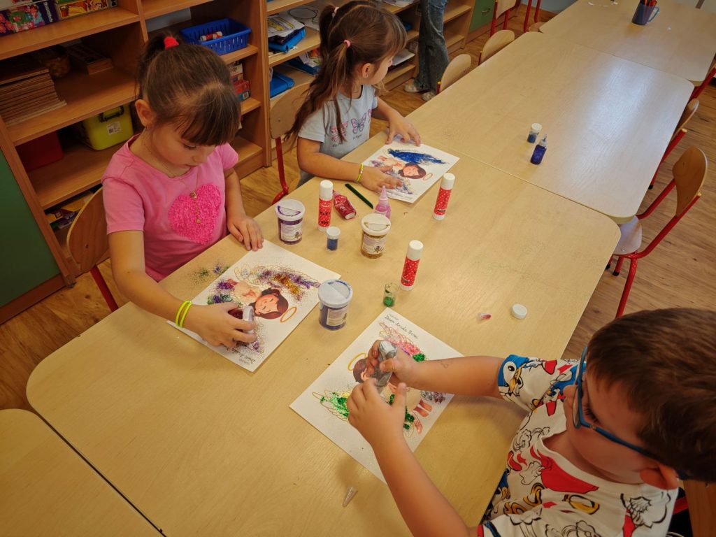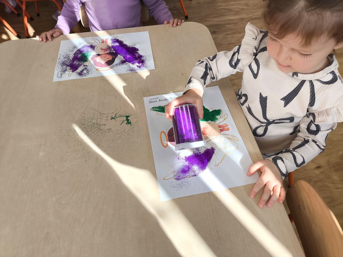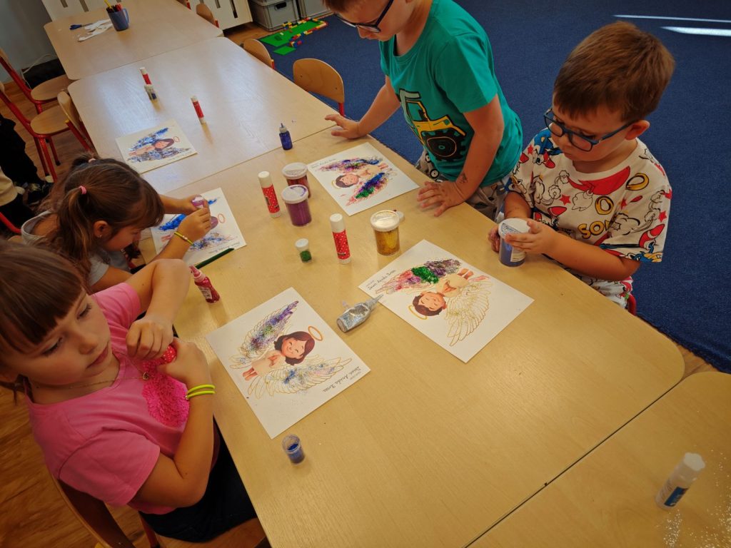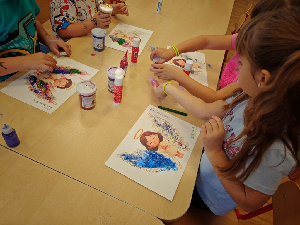 🌟 tworzyliśmy prace plastyczne 🎨 – dzieci ozdabiały skrzydełka aniołków brokatem ✨🪽, a starszaki dodatkowo malowały i dekorowały aniołki z gipsu 🖌️👼