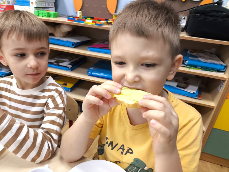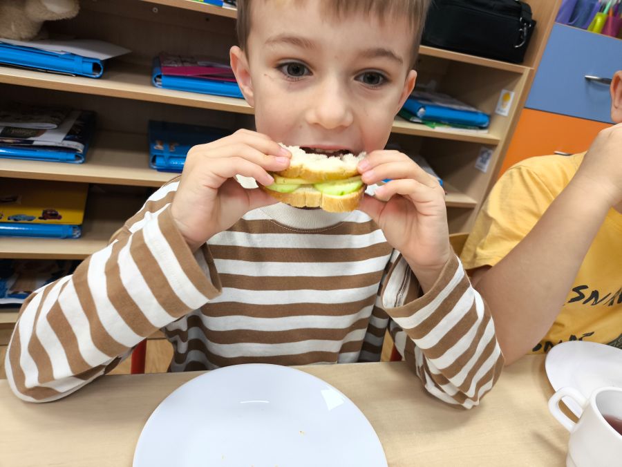 Na koniec wspólnie zjedliśmy nasze kolorowe, zdrowe kanapki i zgodnie stwierdziliśmy, że samodzielnie przygotowane śniadanie smakuje najlepiej! 🧡