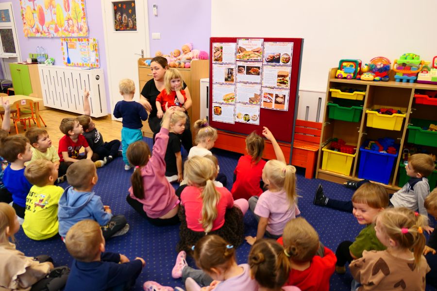 Podczas zajęć dzieci dowiedziały się, dlaczego warto jeść śniadanie każdego dnia, jakie produkty są zdrowe oraz jak łączyć składniki, aby nasze kanapki były nie tylko smaczne, ale też pełne witamin 🍅🥒. Dzięki materiałom edukacyjnym przedszkolaki poznały zasady tworzenia zbilansowanego posiłku i rolę warzyw w codziennej diecie.