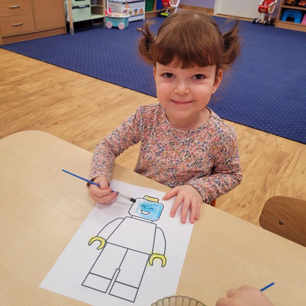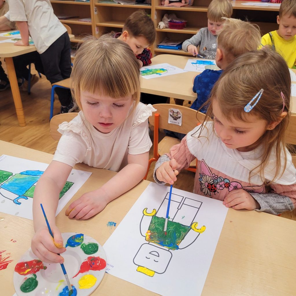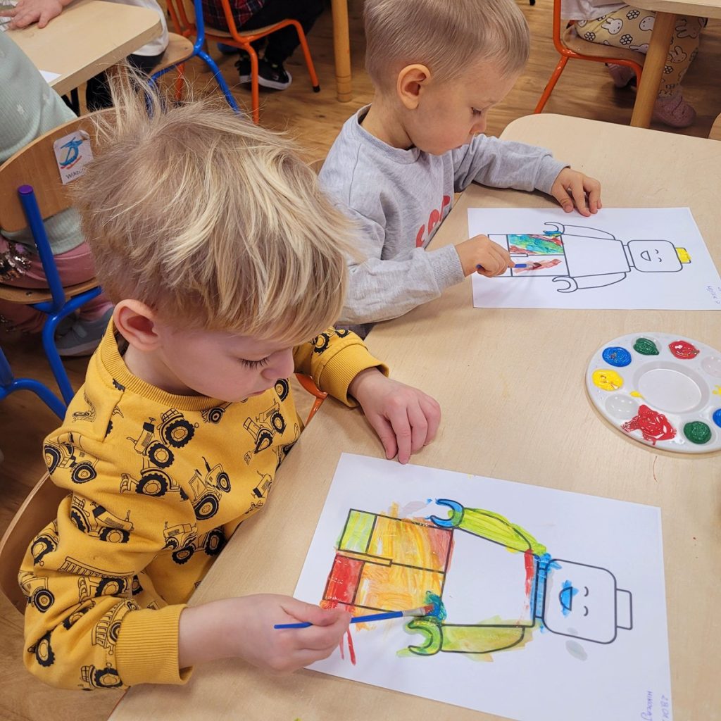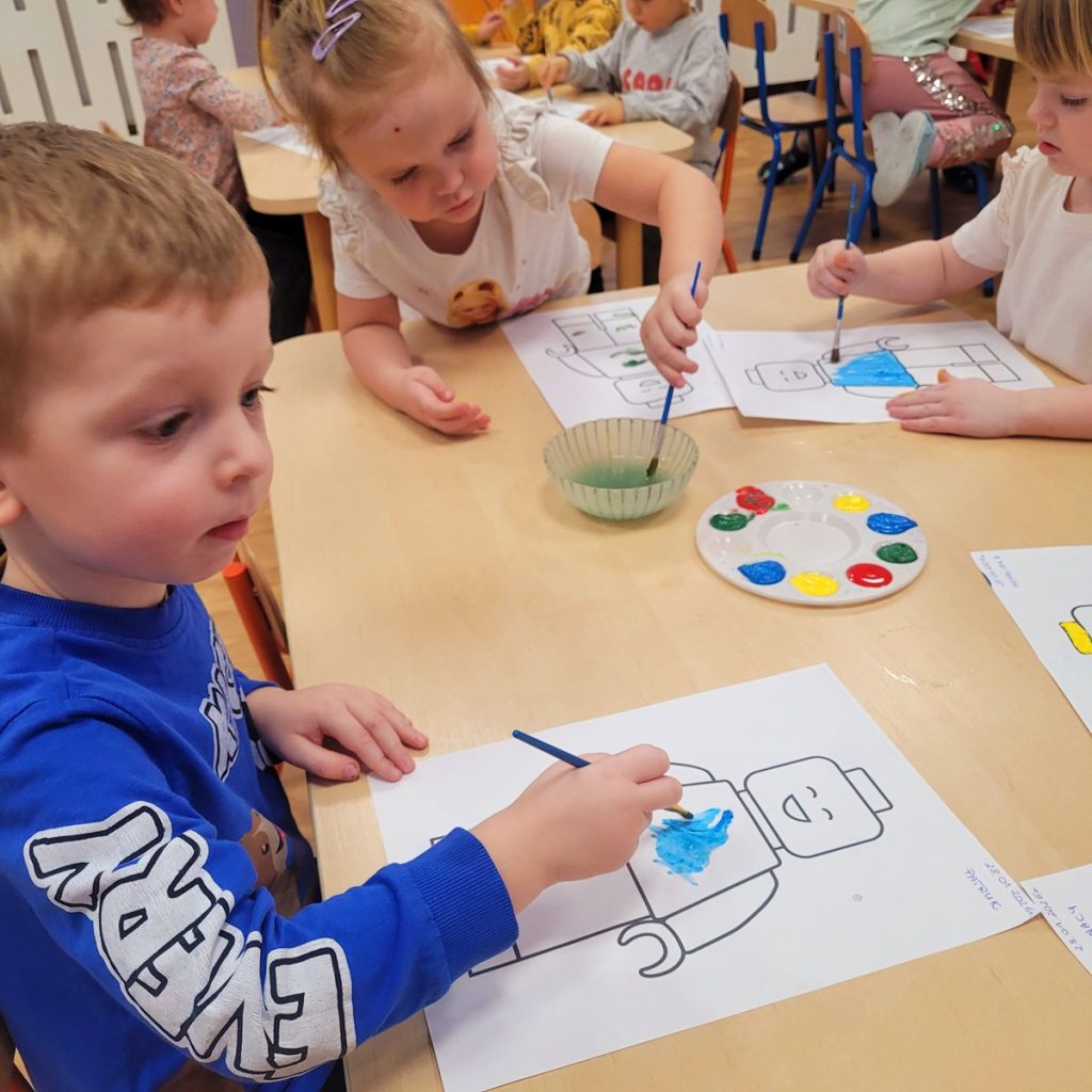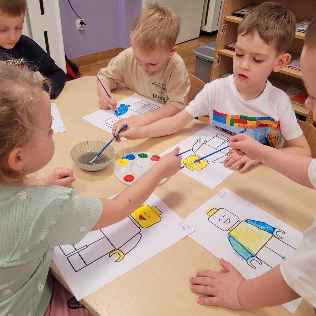 W naszym przedszkolu odbył się Dzień LEGO, pełen kreatywnych działań, zabawy i radości. Dzieci brały udział w różnorodnych zadaniach tematycznych – malowały farbami, wycinały, kleiły oraz tworzyły prace plastyczne inspirowane klockami LEGO.