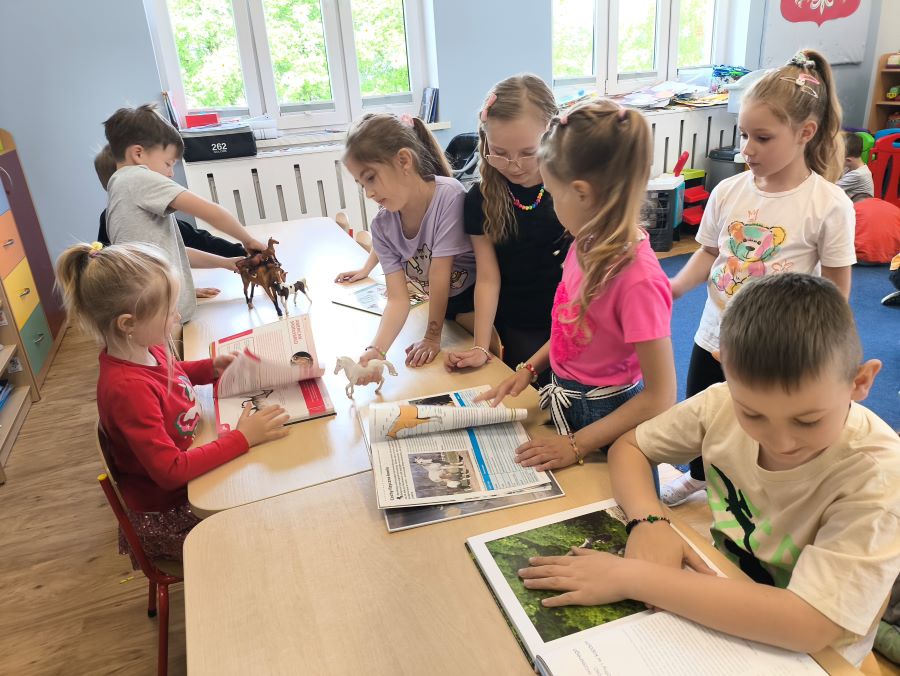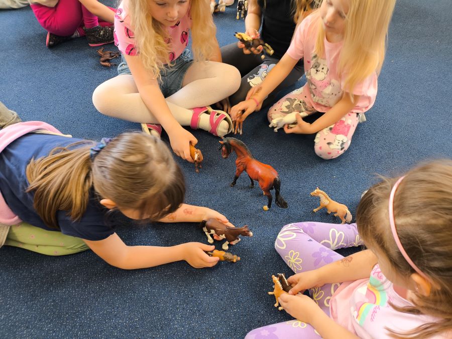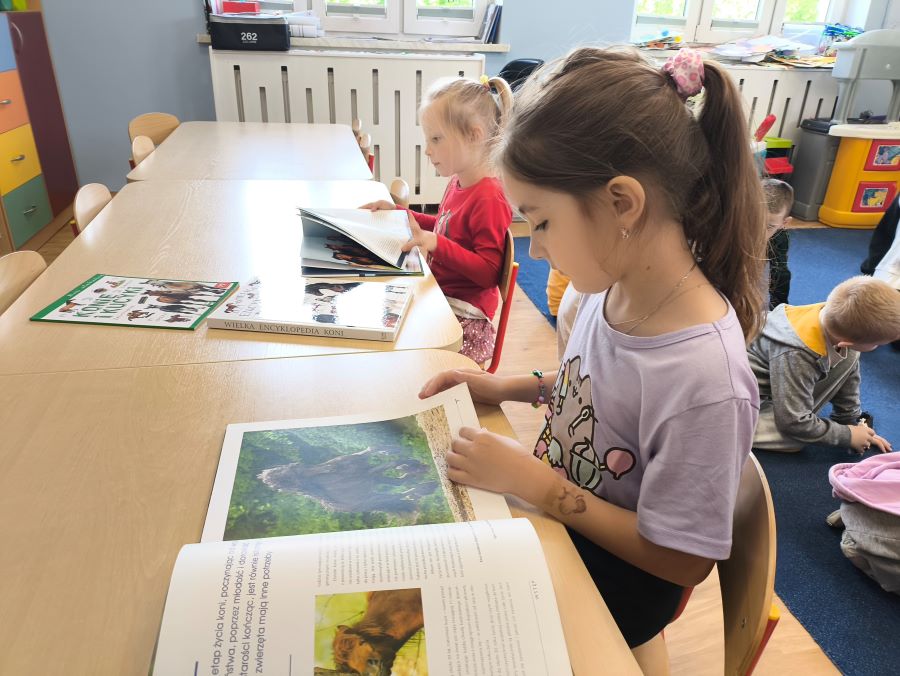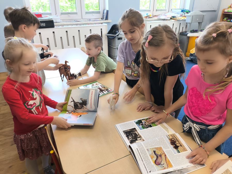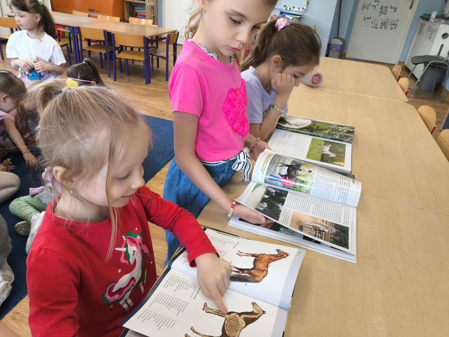 Dzieci poznały różne rasy koni, dowiedziały się, czym się one różnią i gdzie najczęściej można je spotkać. Dzięki ciekawym opowieściom i ilustracjom z książek, świat tych wspaniałych zwierząt stał się nam dużo bliższy 📚👀.
