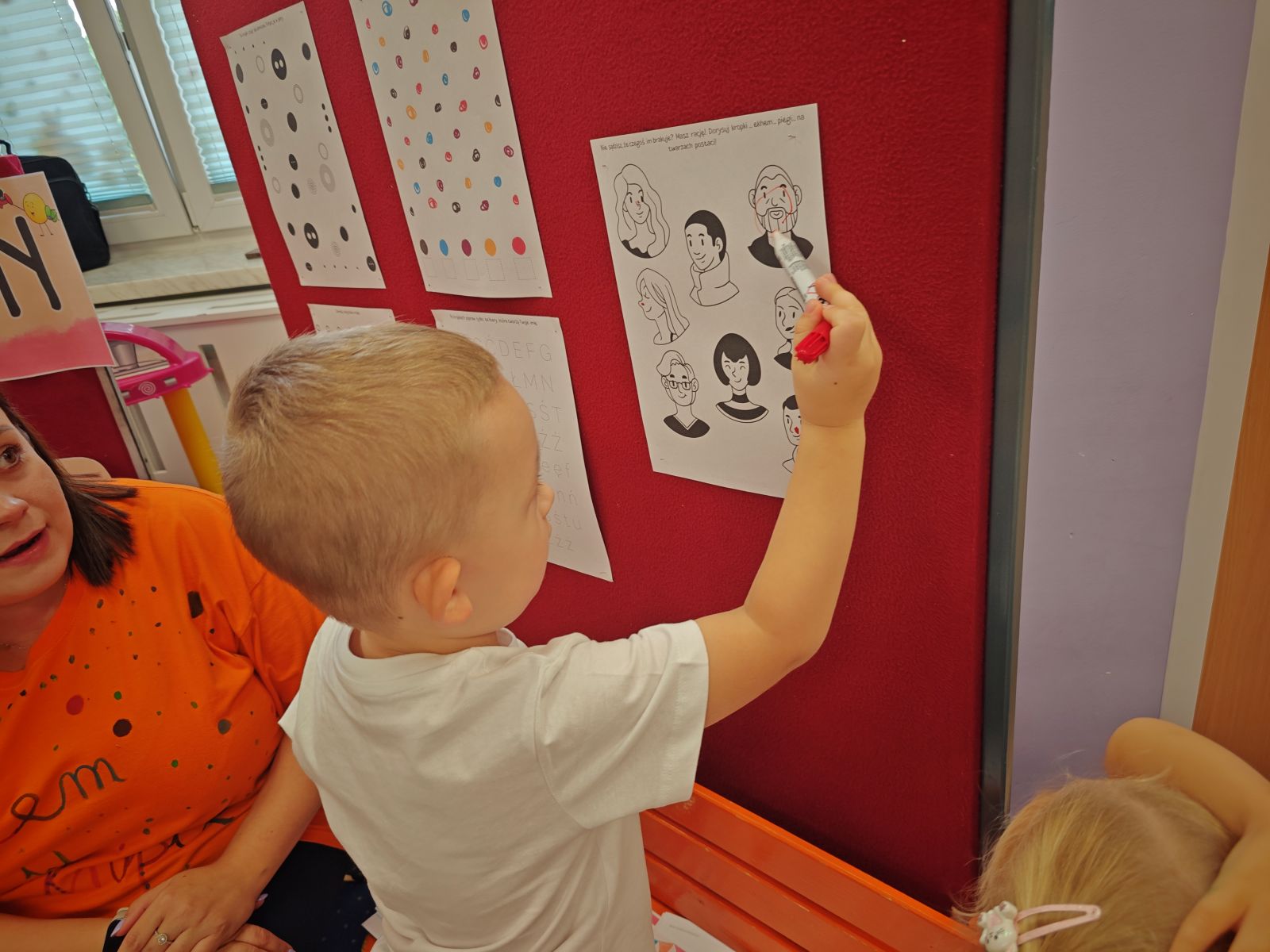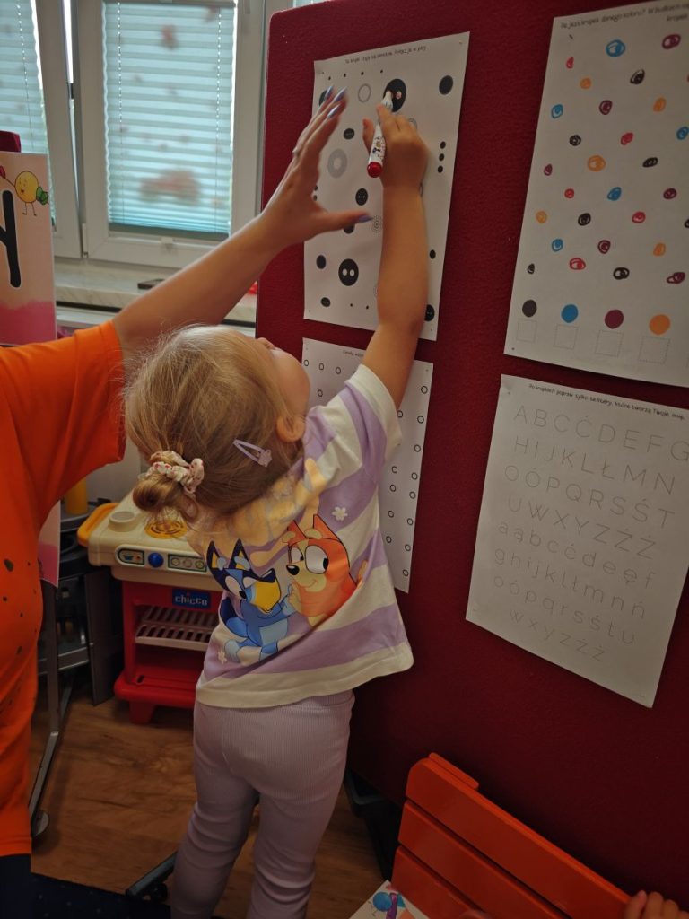 Nie zabrakło również licznych zabaw przy tablicy, które nie tylko bawią, ale i uczą: Domalowywanie piegów, Łączenie tych samych kropek, pisanie po śladzie pierwszej litery swojego imienia. Na koniec wykonaliśmy pracę plastyczną „Kropkowe arcydzieła”. Dzień Kropki to także czas, by uwrażliwić dzieci na ich indywidualne talenty i mocne strony. Dzięki różnorodnym aktywnościom, dzieci uczą się doceniać swoje umiejętności i wierzyć we własne możliwości. To wspaniała okazja do budowania poczucia własnej wartości i pewności siebie u najmłodszych. 🔴🟠🟡