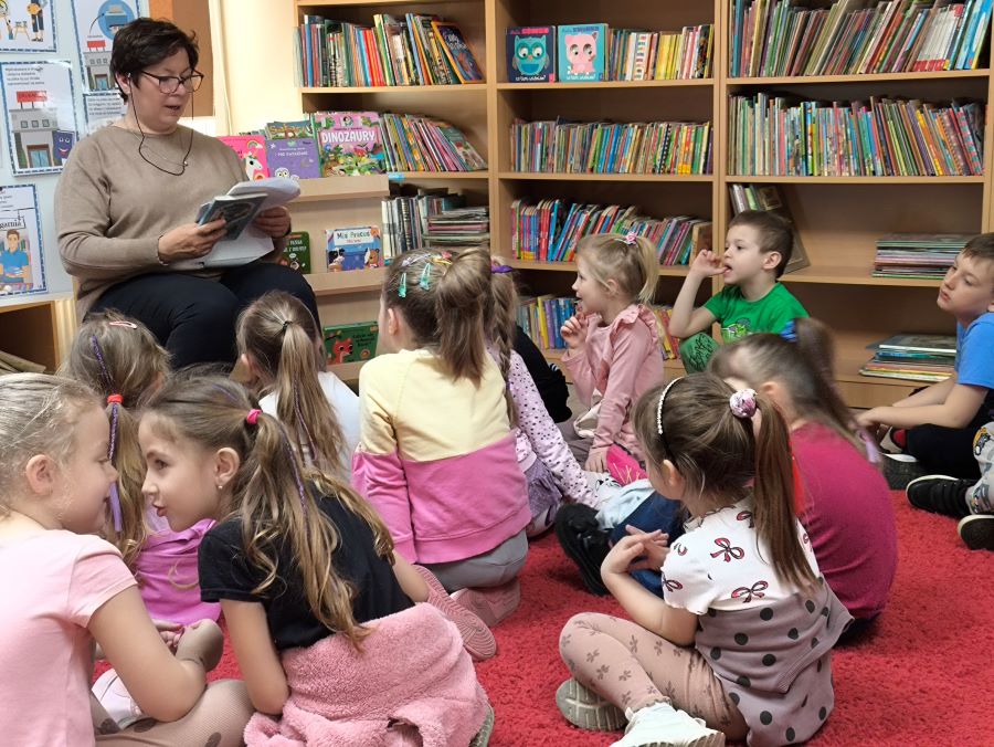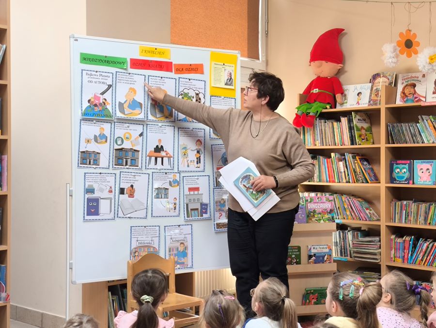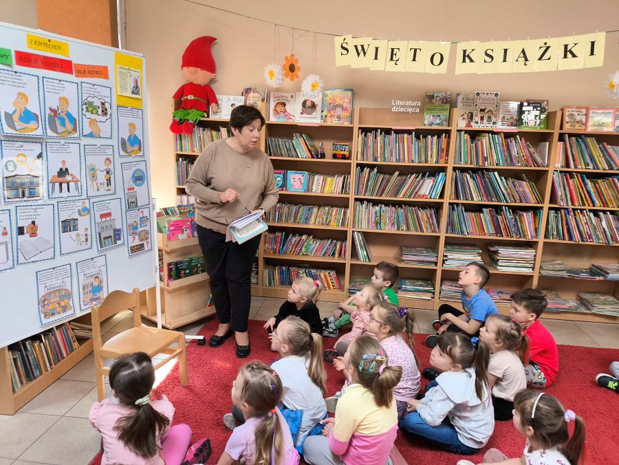 Z okazji Światowego Dnia Książki i Praw Autorskich nasze przedszkolaki wybrały się do biblioteki na wyjątkowe zajęcia z Panią Iwonką 📚🌍.