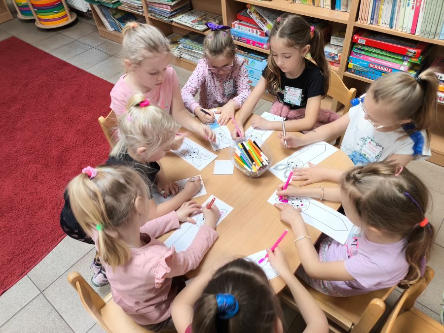 Podczas spotkania dzieci dowiedziały się, jaką długą i ciekawą drogę musi przebyć słowo, zanim stanie się prawdziwą książką – od pomysłu autora, przez pracę ilustratora, redaktora i drukarza, aż po trafienie na biblioteczną czy księgarnianą półkę 🖋️🖼️📖.