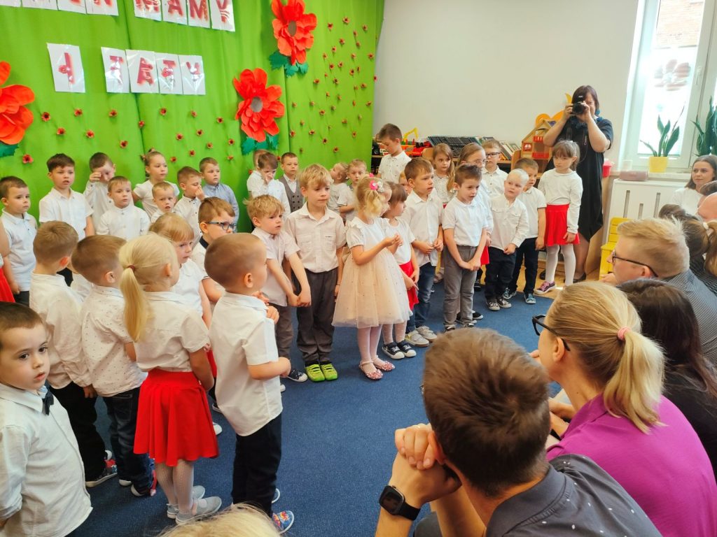 Przedszkolaki z ogromnym zaangażowaniem zaprezentowały piękne występy, które wzruszyły wszystkich obecnych rodziców. Były piosenki, wierszyki oraz serdeczne życzenia, które płynęły prosto z dziecięcych serc.