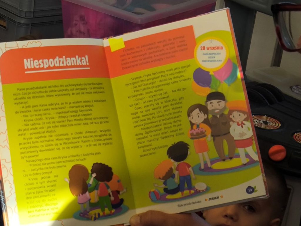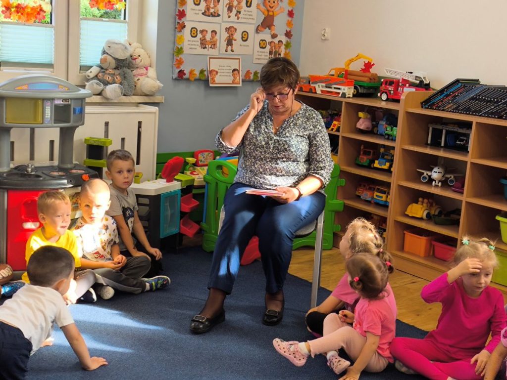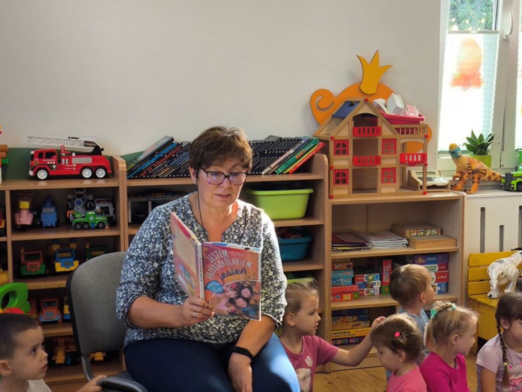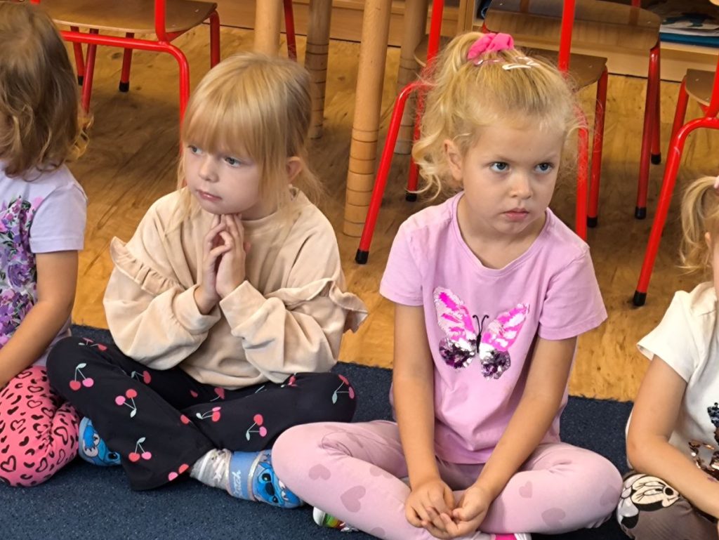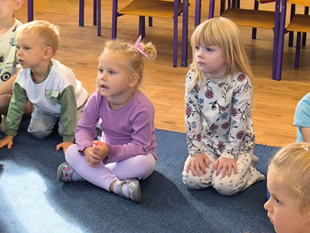 Na początek dzieci wysłuchały bajki z książki „Jestem Przedszkolakiem – jesień” 📖🍂 Było bardzo cicho i magicznie – wszyscy z zaciekawieniem słuchali opowieści, a potem rozmawialiśmy nt. wysłuchanej treści.