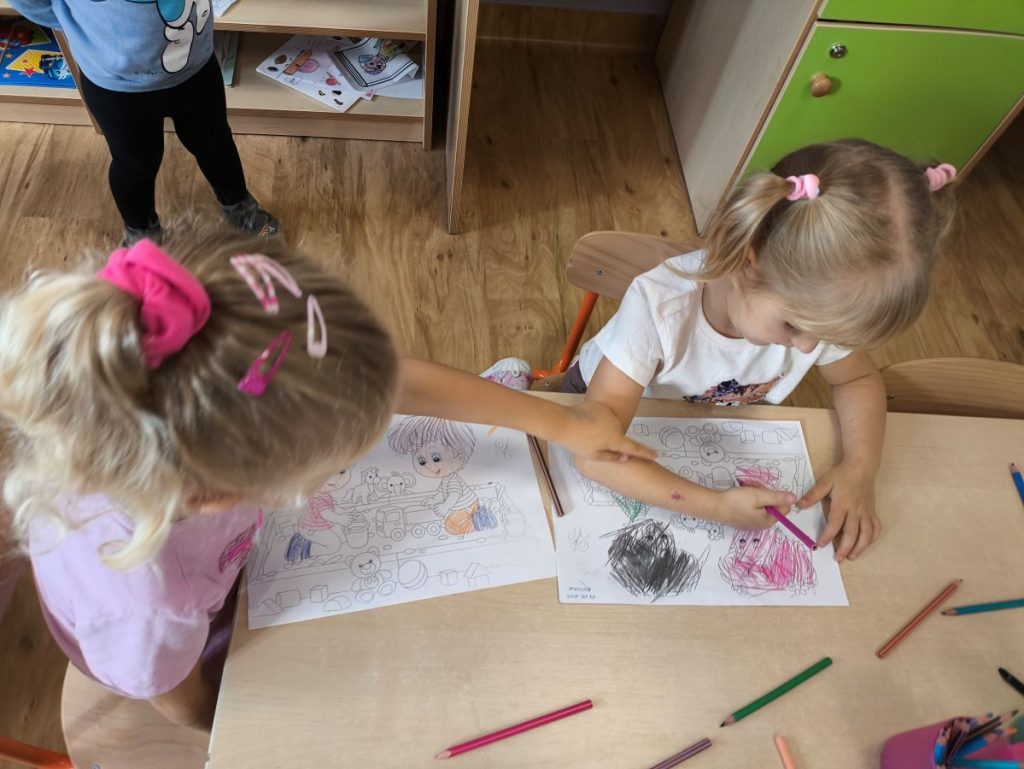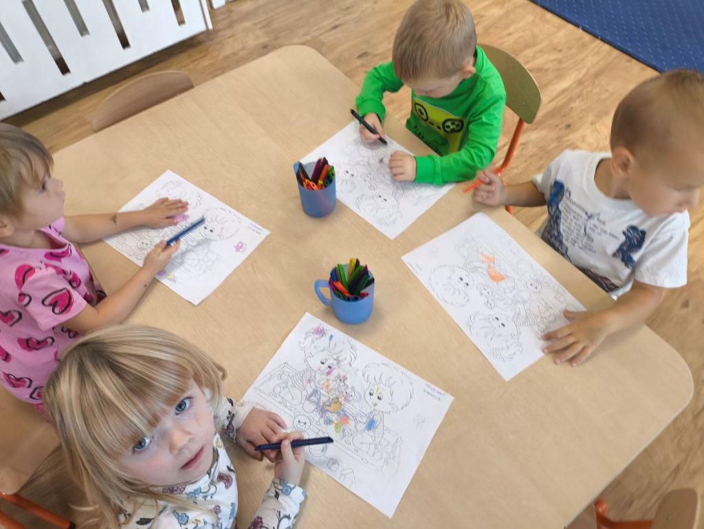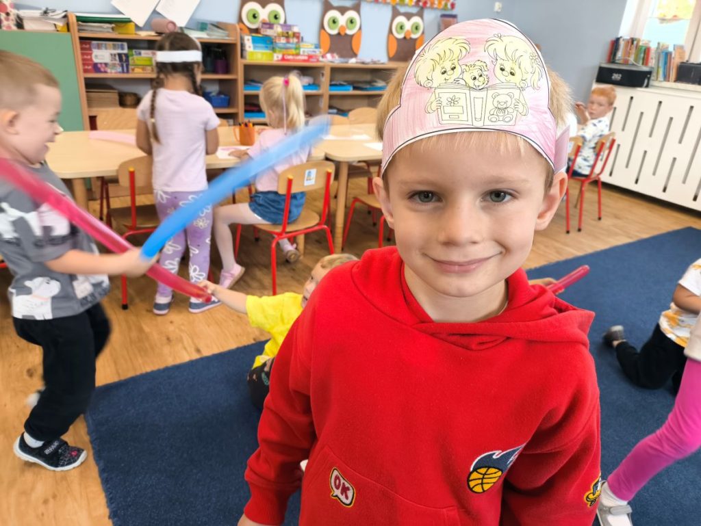 Później przyszedł czas na twórcze zabawy – chętne dzieci kolorowały obrazki 🖍️ a inni wykonywali opaski na głowę 👑 które potem z dumą nosili.
