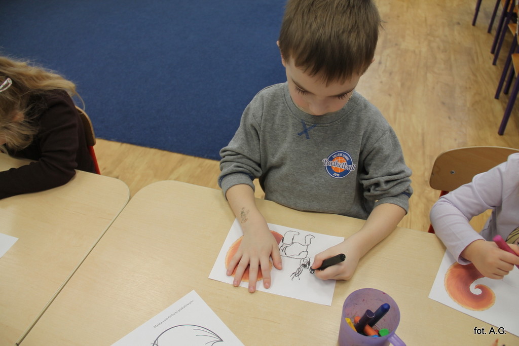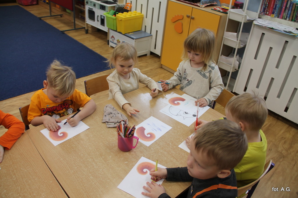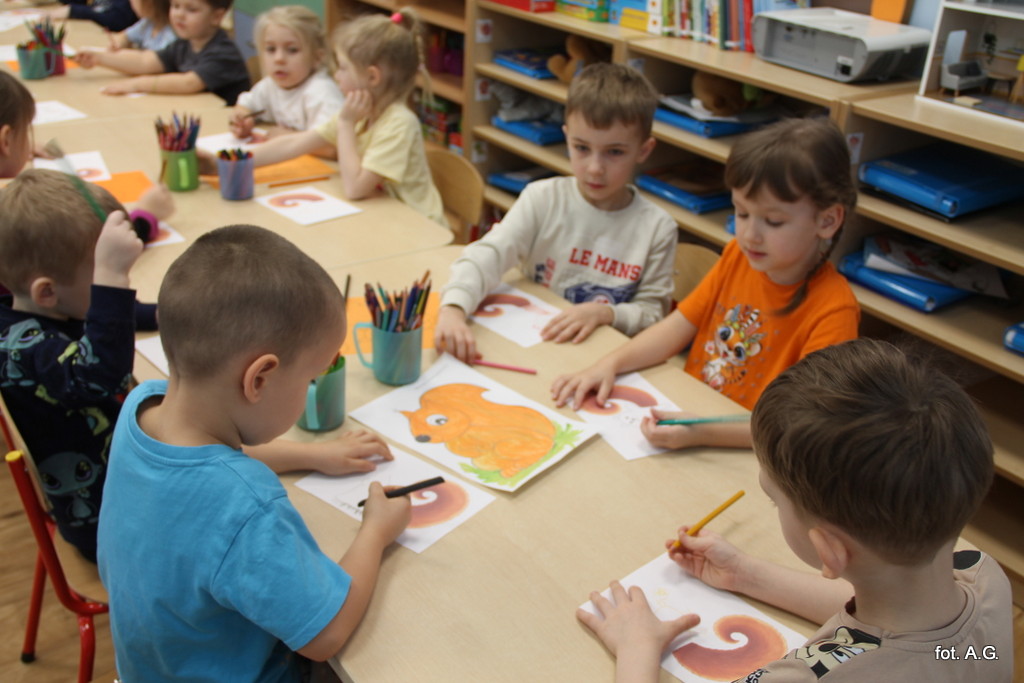 Na zakończenie dnia dzieci wykonały pracę plastyczną. Powstała cała galeria rudych ogonków, które teraz zdobią naszą przedszkolną galerię.