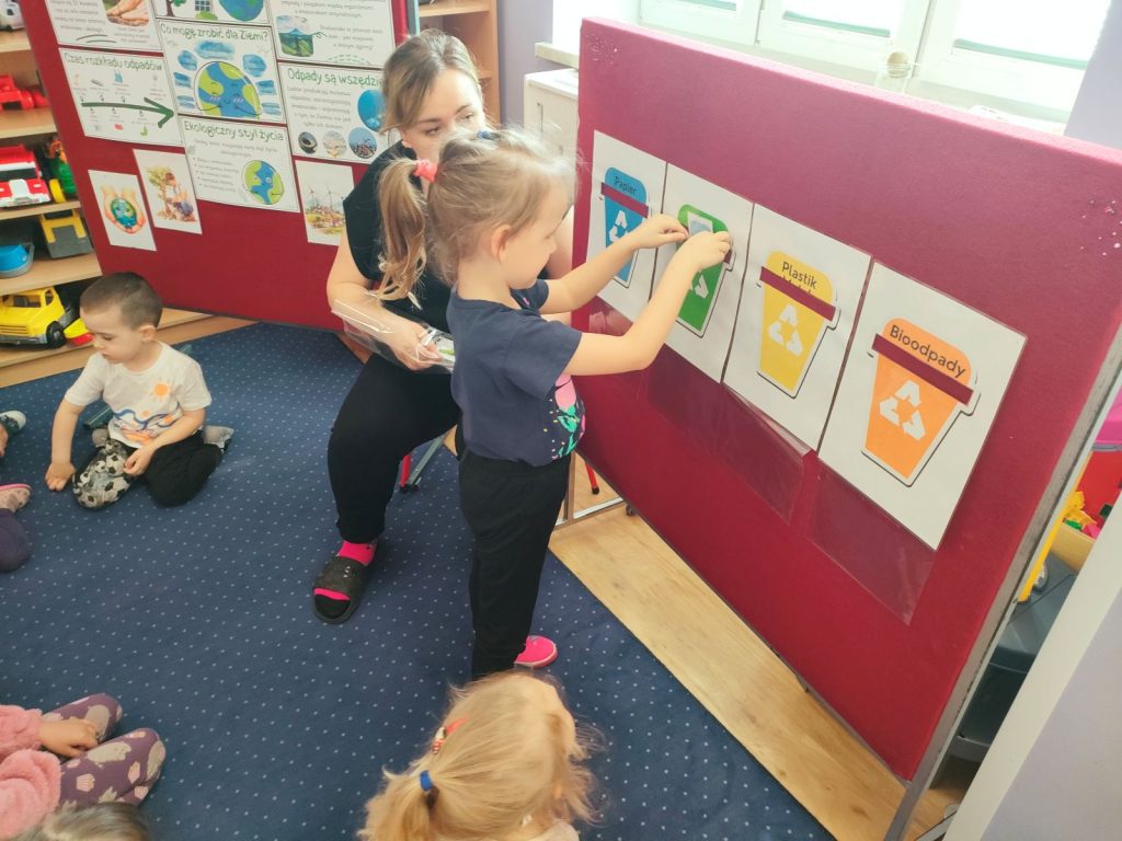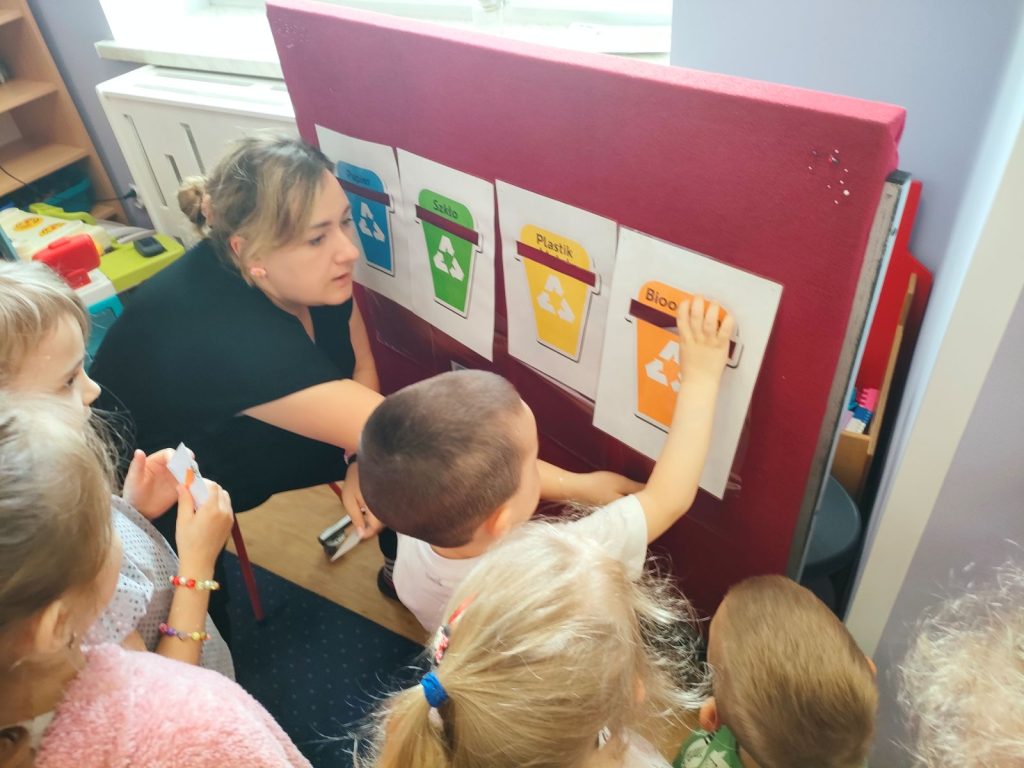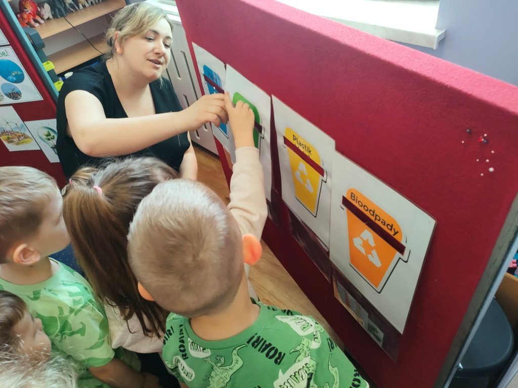Zaraz po śniadanku, pełni energii i ciekawości, zebraliśmy się w sali maluszków, by wspólnie świętować Dzień Ziemi. To wyjątkowe wydarzenie było doskonałą okazją, by nauczyć się, jak możemy dbać o naszą planetę od najmłodszych lat. Podczas spotkania dowiedzieliśmy się, jak prawidłowo segregować śmieci. Dzieci z zainteresowaniem słuchały o tym, ile czasu różne odpady się rozkładają i jakie konsekwencje niesie za sobą niewłaściwe postępowanie z odpadami. Rozmawialiśmy również o tym, co wolno robić ze śmieciami, a czego zdecydowanie powinniśmy unikać, aby chronić środowisko. Opowiedzieliśmy też, jak wygląda sytuacja w lesie, gdy ludzie pozostawiają tam śmieci. Dzieci dowiedziały się, że pozostawione odpady nie tylko psują piękno natury, ale także zagrażają zwierzętom, które mogą się nimi zatruć lub zranić. Aby lepiej zrozumieć, jak ważna jest troska o Ziemię, przeczytaliśmy krótką i pouczającą historię o dbaniu o naszą planetę. Dzieci z wielkim zainteresowaniem słuchały opowieści o małym chłopcu, który postanowił zmienić świat na lepsze poprzez codzienne, proekologiczne działania. Na zakończenie zajęć mieliśmy praktyczne ćwiczenie. Dzieci z entuzjazmem przystąpiły do segregowania śmieci do poszczególnych koszy na tablicy. Każdy z uczestników mógł sprawdzić, czy wie, do którego pojemnika wrzucić papier, plastik, szkło i inne odpady. Dzięki temu dzieci mogły utrwalić swoją wiedzę i zrozumieć, jak ważna jest segregacja śmieci dla naszej planety.