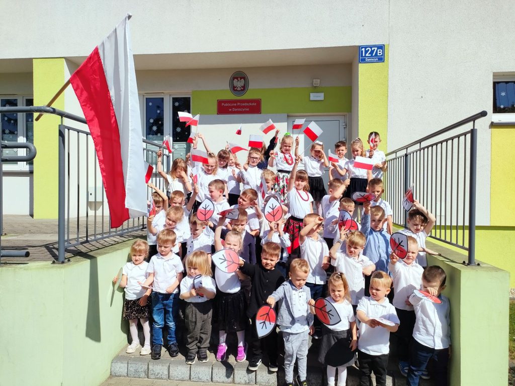 Dzień rozpoczęliśmy od krótkiego wprowadzenia na temat majowych świąt. Dzieci z zainteresowaniem słuchały o znaczeniu tych dni w polskiej historii i tradycji. Omówiliśmy, dlaczego są one dla nas ważne i jakie wartości reprezentują. Następnie przedszkolaki miały okazję obejrzeć specjalnie przygotowaną bajkę na dużym ekranie – „Karolek i Święta Majowe”. Była to wyjątkowa opowieść, która w przystępny sposób przybliżyła dzieciom temat patriotyzmu i radości z obchodzenia świąt narodowych. Po seansie filmowym wyszliśmy na dwór, gdzie cała grupa z entuzjazmem zaśpiewała hymn oraz inne piosenki patriotyczne. Było to wzruszające doświadczenie, które zjednoczyło nas wszystkich i pozwoliło poczuć dumę z bycia częścią naszej narodowej wspólnoty.