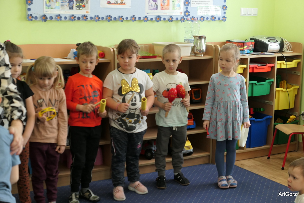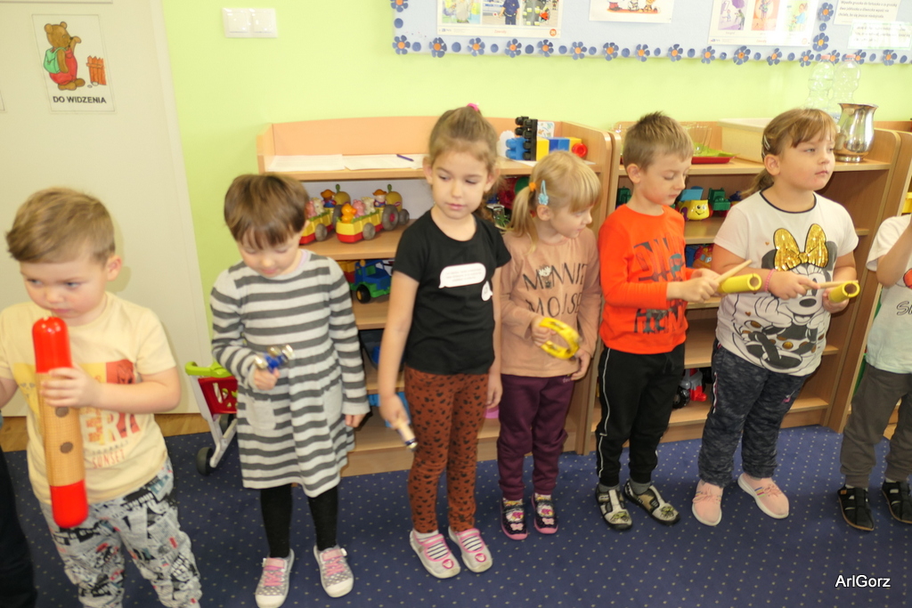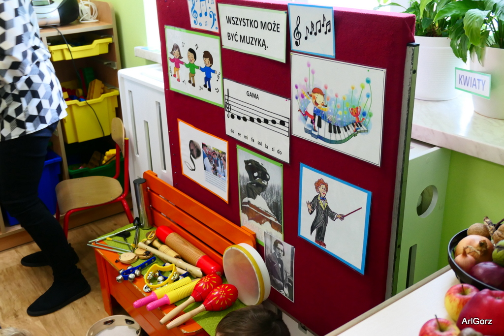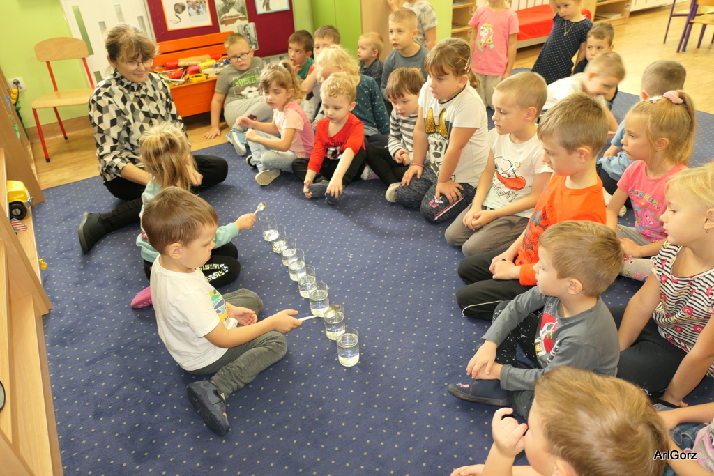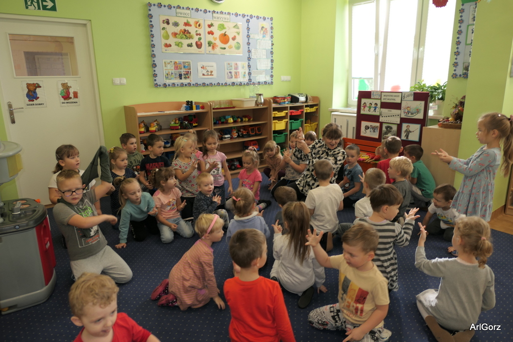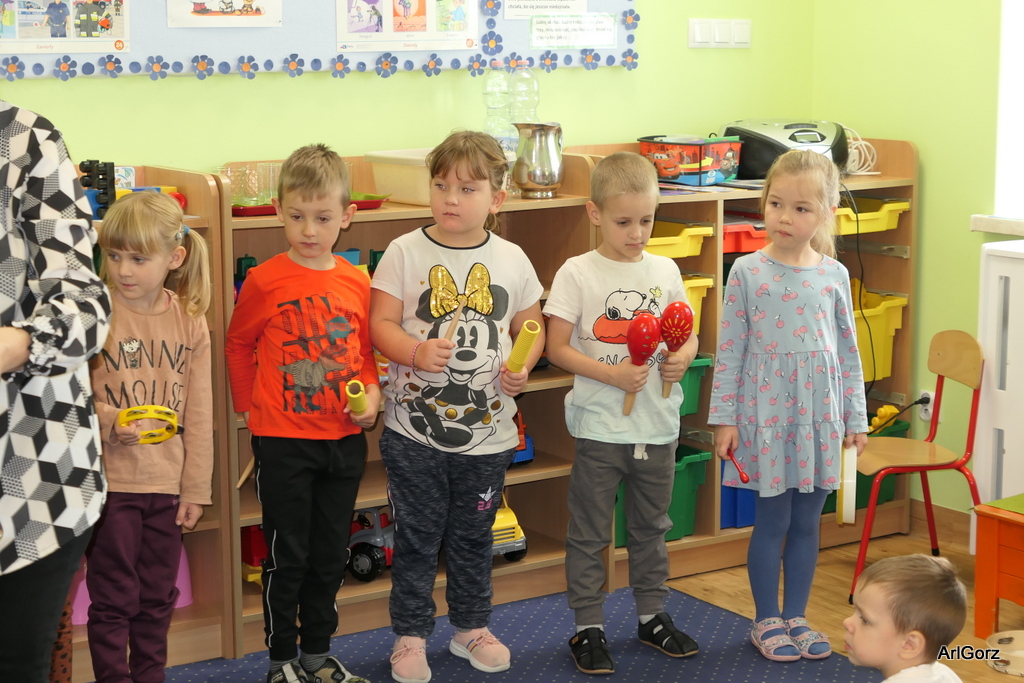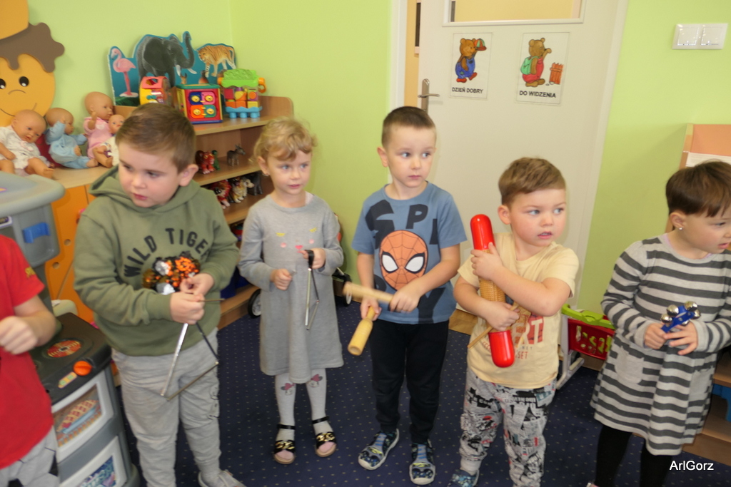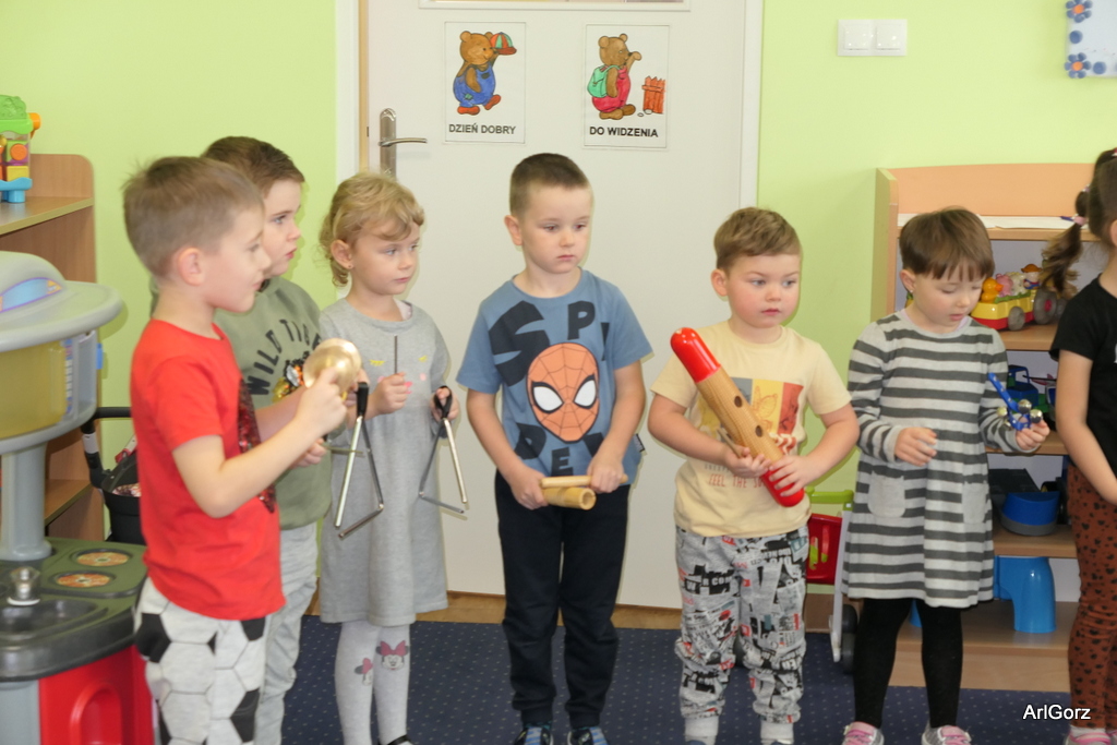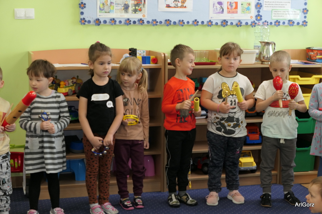 3 października w naszym przedszkolu obchodziliśmy Międzynarodowy Dzień Muzyki. W tym dniu nasze przedszkolaki przeniosły się do krainy dźwięków, aby wspólnie bawić się muzyką. Bębenek czy tamburyno, kołatki, talerze…etc.  to tylko niektóre instrumenty, które dzieci mogły poznać i usłyszeć na żywo, ale również spróbować na nich zagrać, odkrywając przy tym swój talent muzyczny. Razem stworzyliśmy prawdziwą orkiestrę. Przedszkolaki nie tylko uważnie słuchały utworów muzycznych, ale również aktywnie brały udział w zabawach muzyczno-ruchowych.  Przy okazji realizacji Dnia Muzyki przedszkolaki zgodnie z programem, który realizujemy w tym roku: „Z darami natury świat nie jest ponury” poznały walory “Wodnej muzyki”. Było pluskanie, przelewanie, bomblowanie i inne zabawy z wodą.  Zabawa była wyśmienita a dzieci radosne i zadowolone.