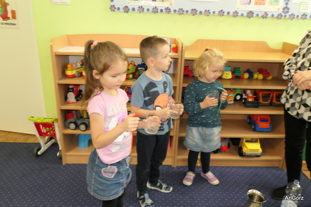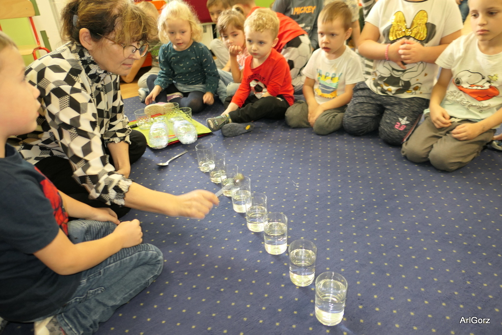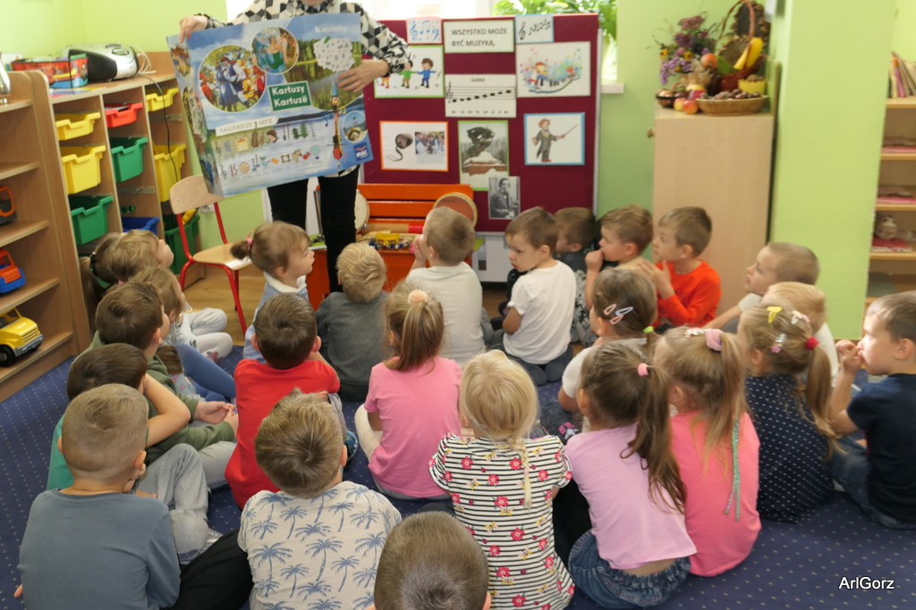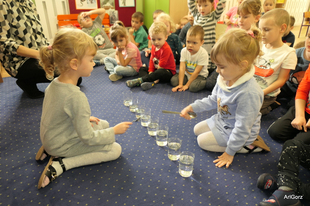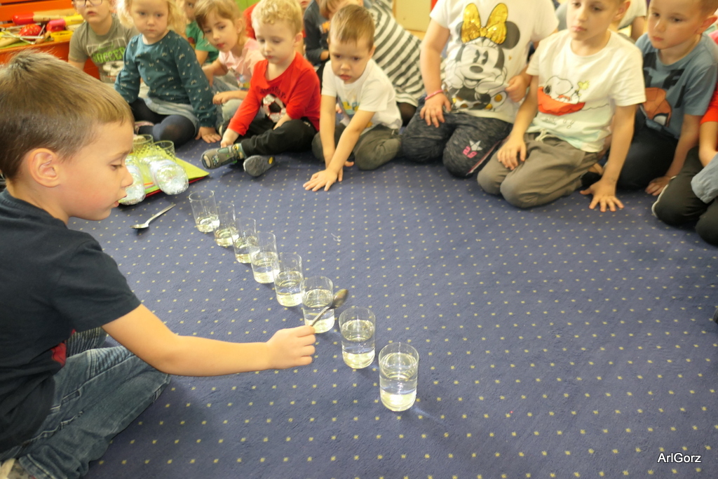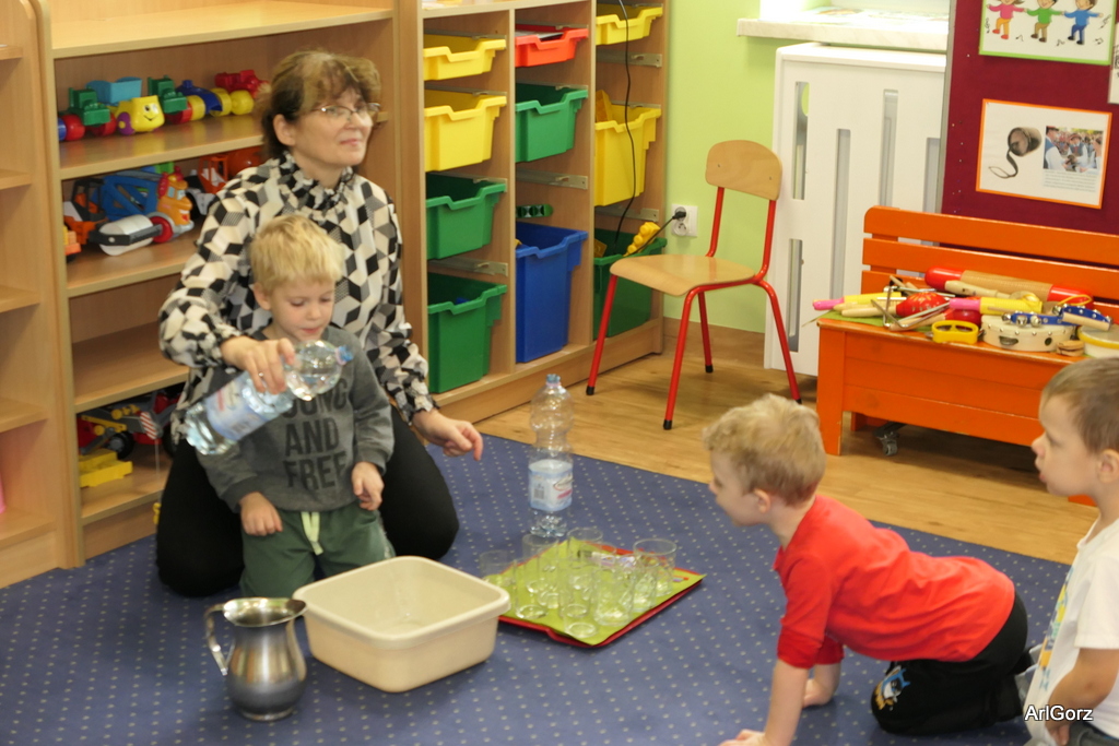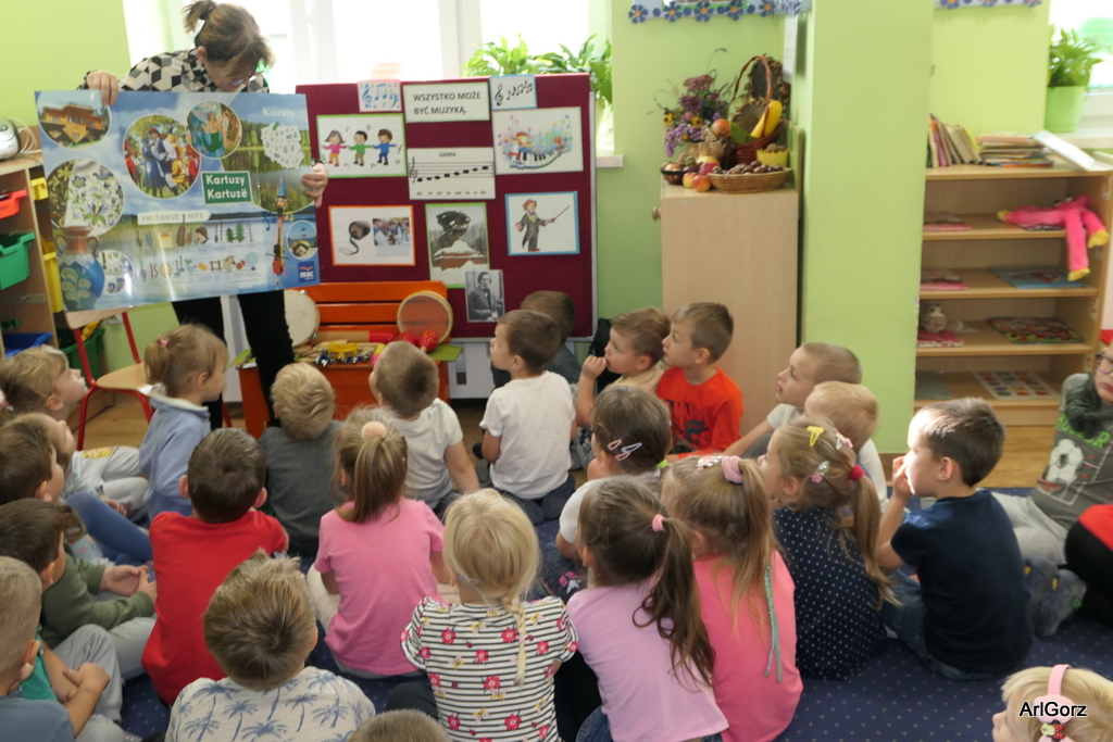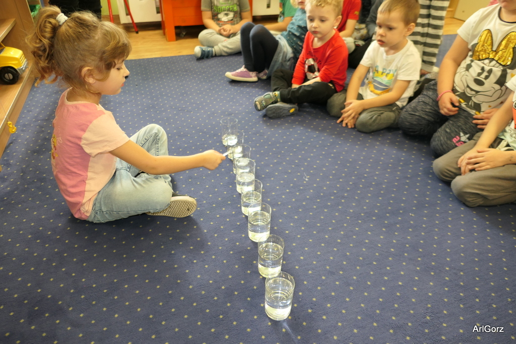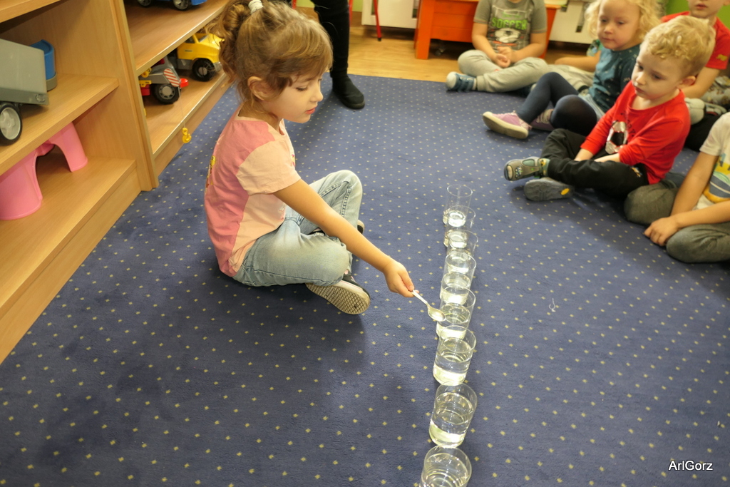3 października w naszym przedszkolu obchodziliśmy Międzynarodowy Dzień Muzyki. W tym dniu nasze przedszkolaki przeniosły się do krainy dźwięków, aby wspólnie bawić się muzyką. Bębenek czy tamburyno, kołatki, talerze…etc.  to tylko niektóre instrumenty, które dzieci mogły poznać i usłyszeć na żywo, ale również spróbować na nich zagrać, odkrywając przy tym swój talent muzyczny. Razem stworzyliśmy prawdziwą orkiestrę. Przedszkolaki nie tylko uważnie słuchały utworów muzycznych, ale również aktywnie brały udział w zabawach muzyczno-ruchowych.  Przy okazji realizacji Dnia Muzyki przedszkolaki zgodnie z programem, który realizujemy w tym roku: „Z darami natury świat nie jest ponury” poznały walory “Wodnej muzyki”. Było pluskanie, przelewanie, bomblowanie i inne zabawy z wodą.  Zabawa była wyśmienita a dzieci radosne i zadowolone.