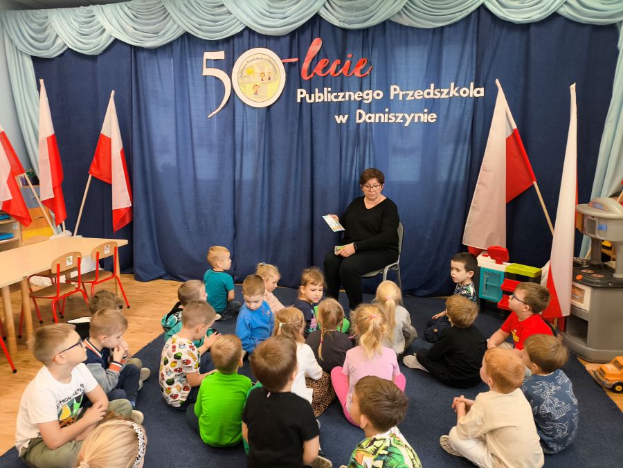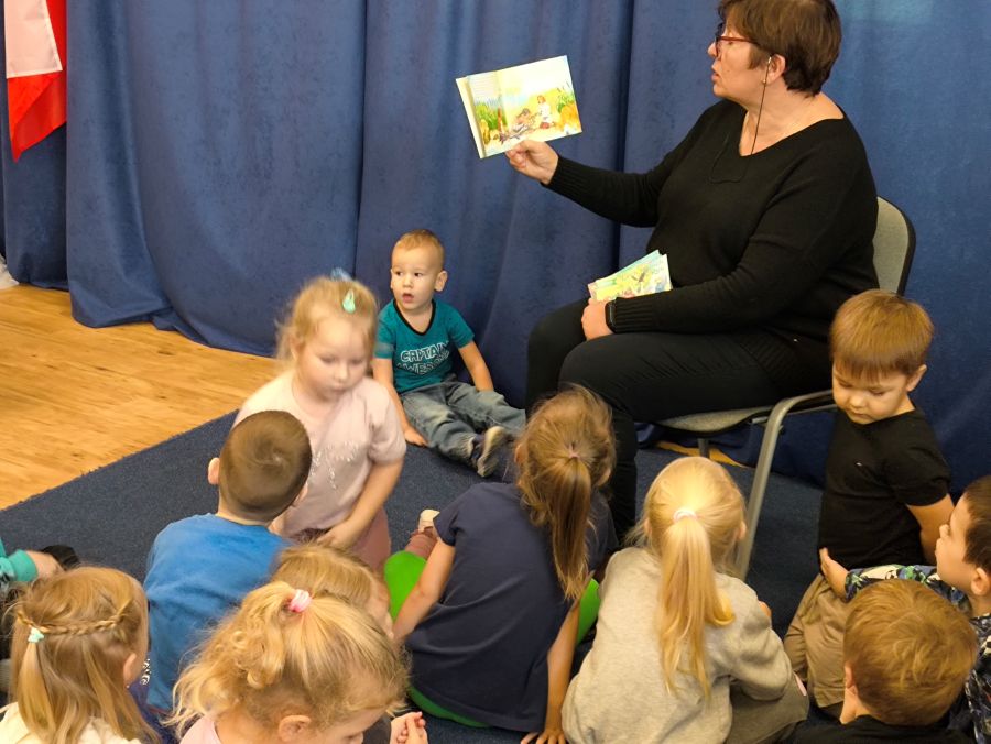Przybyła do nas, aby zabrać dzieci w niezwykły świat polskich legend. Mali słuchacze z wielkim zainteresowaniem zasiedli na dywanie, czekając na to, jakie opowieści dziś poznają.