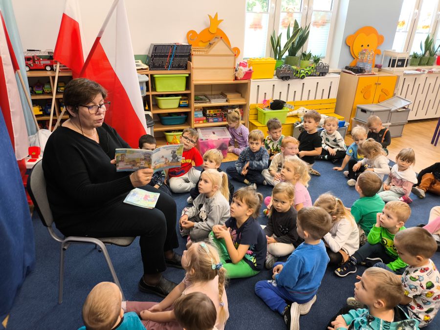 Pani Iwonka przeczytała nam dwie znane i lubiane legendy. Pierwszą z nich była „Legenda o Warszawskiej Syrence” 🧜♀️🌊 Dzieci z ciekawością słuchały historii o odważnej Syrence, która zamieszkała nad Wisłą i stała się symbolem Warszawy.