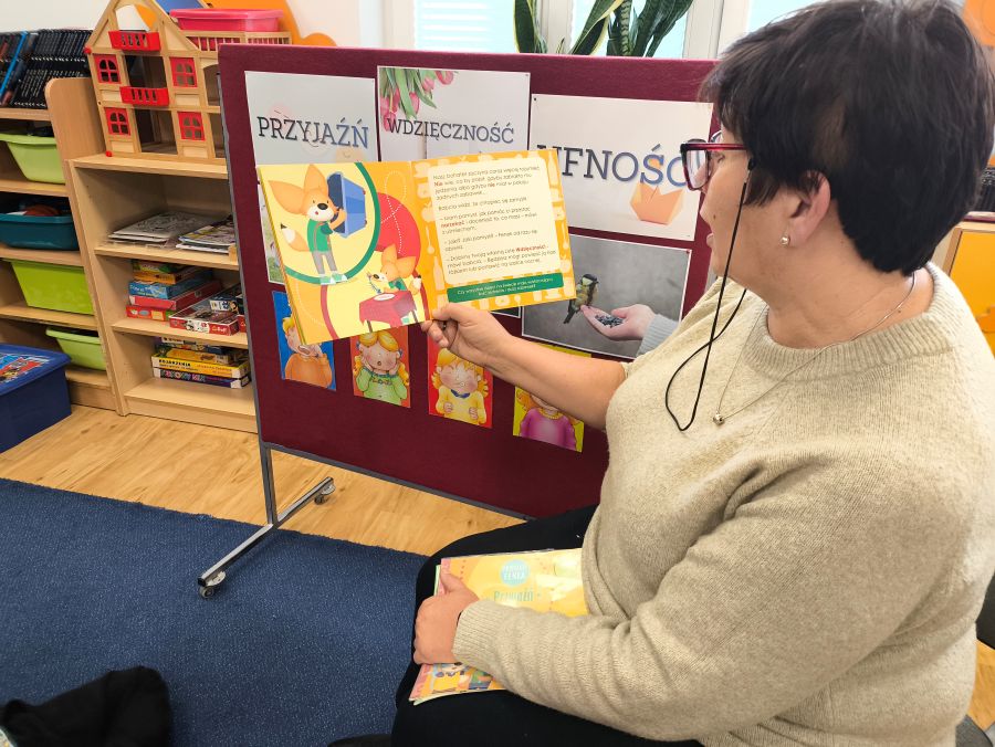 W naszym przedszkolu odbyły się niezwykle wartościowe zajęcia realizowane we współpracy z Biblioteką w Daniszynie. W ramach projektu „Biblioteka pełna emocji. Literatura jako narzędzie kształtowania charakteru” odwiedziła nas pani Iwonka, nasza bibliotekarka, która zabrała dzieci w świat mądrych i poruszających opowieści 📖🌟