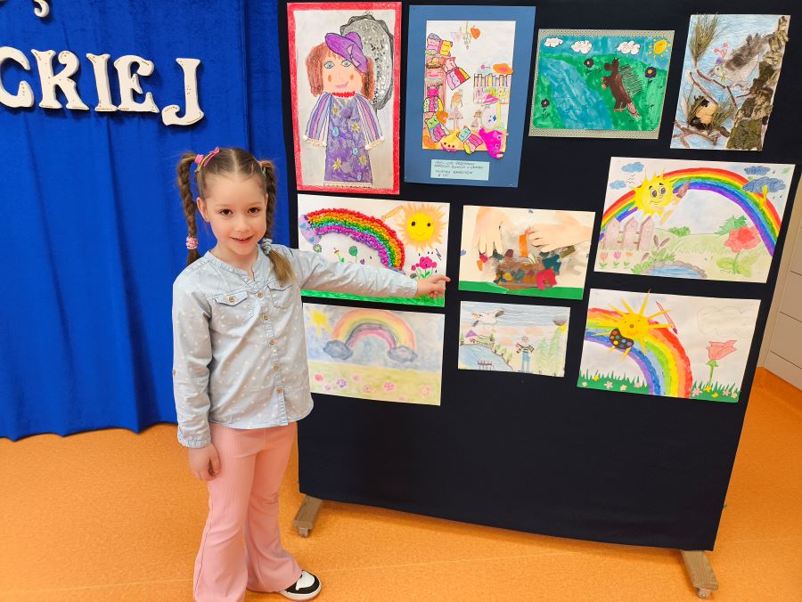 Z kolei Ewa przepięknie wykonała pracę plastyczną inspirowaną wierszem „Pranie” 🧺🎨 – pełną barw, pomysłowości i dziecięcej wrażliwości.