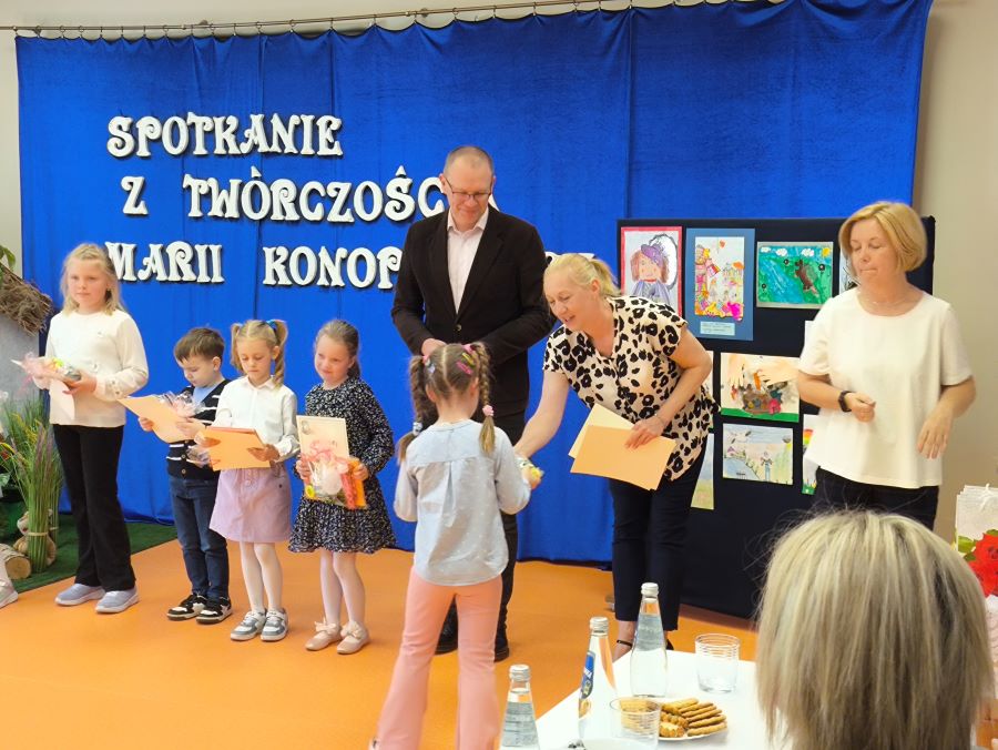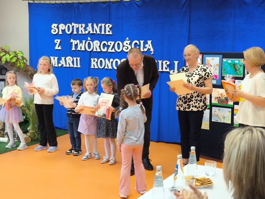 Podczas tego literackiego święta dzieci miały okazję bliżej poznać twórczość jednej z najwybitniejszych polskich poetek. Nasz Marcel fenomenalnie zaprezentował wiersz „Żuczek” 🪲 – z wielkim zaangażowaniem i sceniczną odwagą, czym oczarował publiczność.