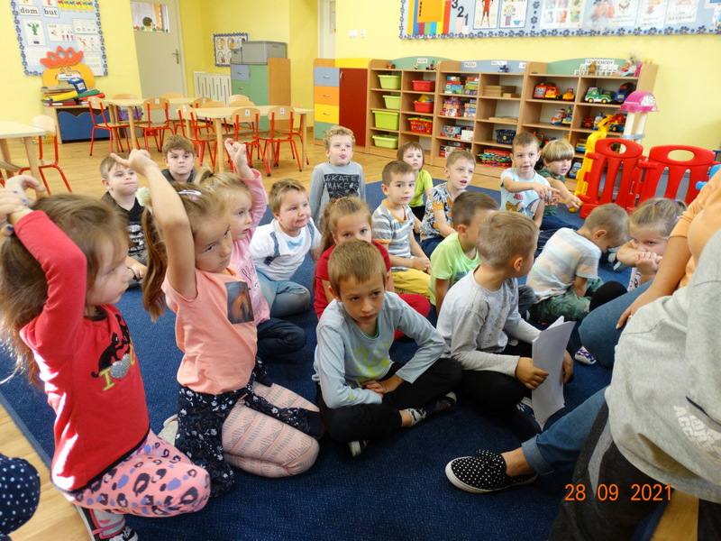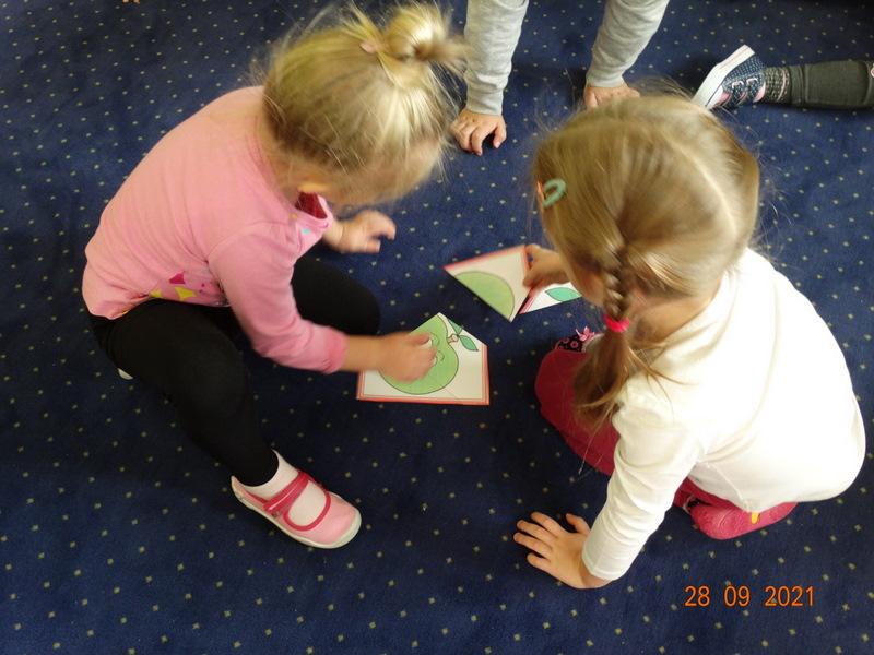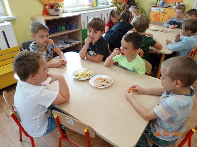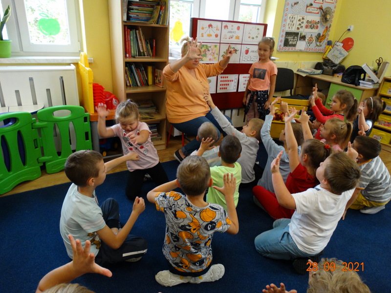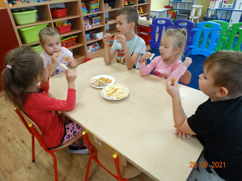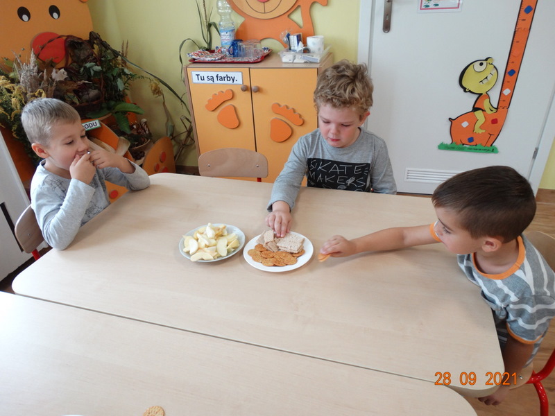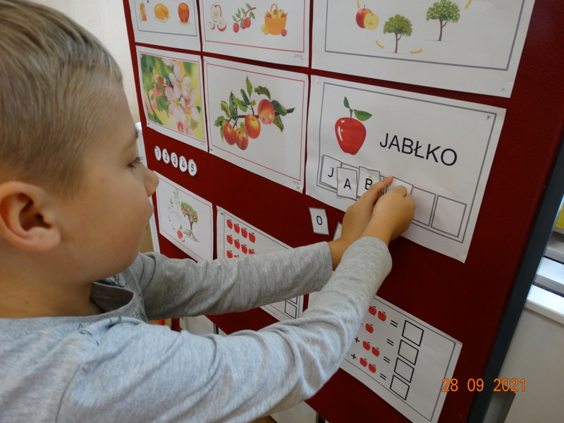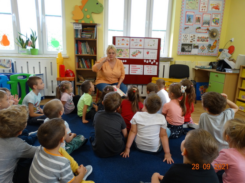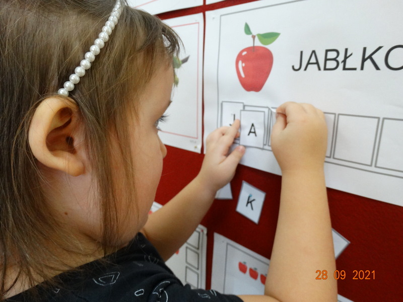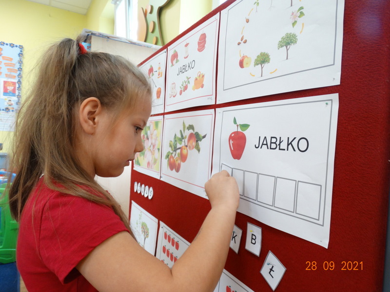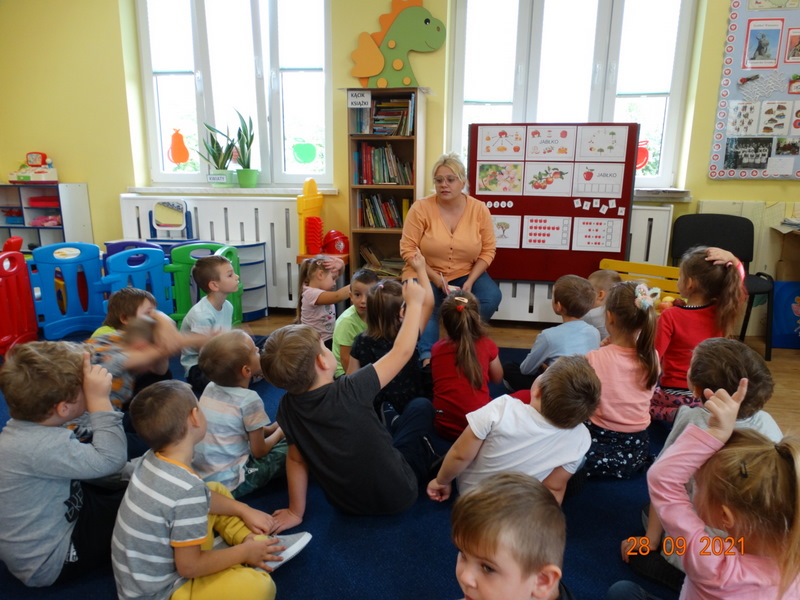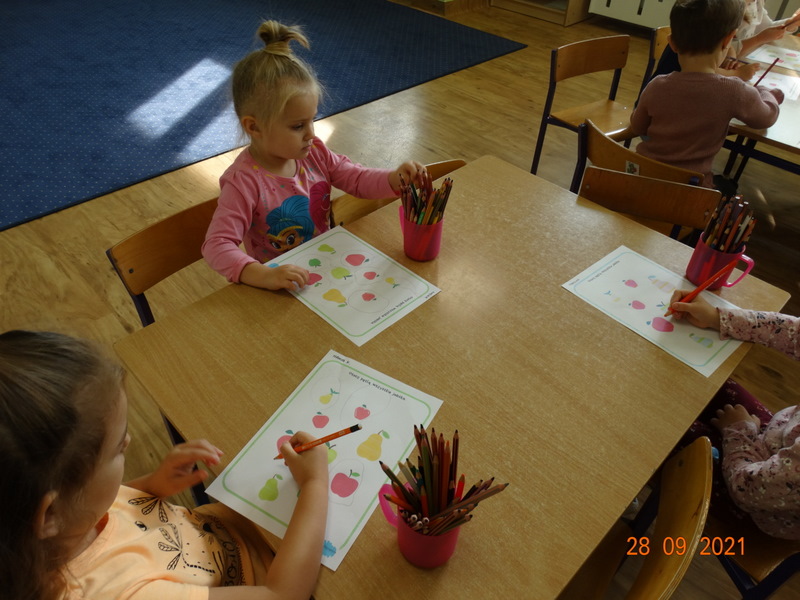 28 września w naszym przedszkolu zorganizowane zostało Święto Jabłka. W tym dniu przedszkolaki poznały różne gatunki jabłek, rozpoznawały zapach i smak tych owoców oraz zdobywały wiadomości na temat potraw i przetworów z jabłek. Nasze prace plastyczne zamieniły się w kolorowe sady, na których królowały oczywiście jabłuszka. Ponadto wykonały kilka zadań matematycznych: tworzyły zbiory, przeliczały owoce, porównywały wielkość, wykonywały ćwiczenia wspomagające kształtowanie orientacji przestrzennej. Tego dnia w przedszkolnym menu oczywiście nie zabrakło soczystych jabłek. Głównym celem tego dnia było zachęcanie przedszkolaków do spożywania owoców i to pod różnymi postaciami, z powodu ich walorów odżywczych i zdrowotnych.