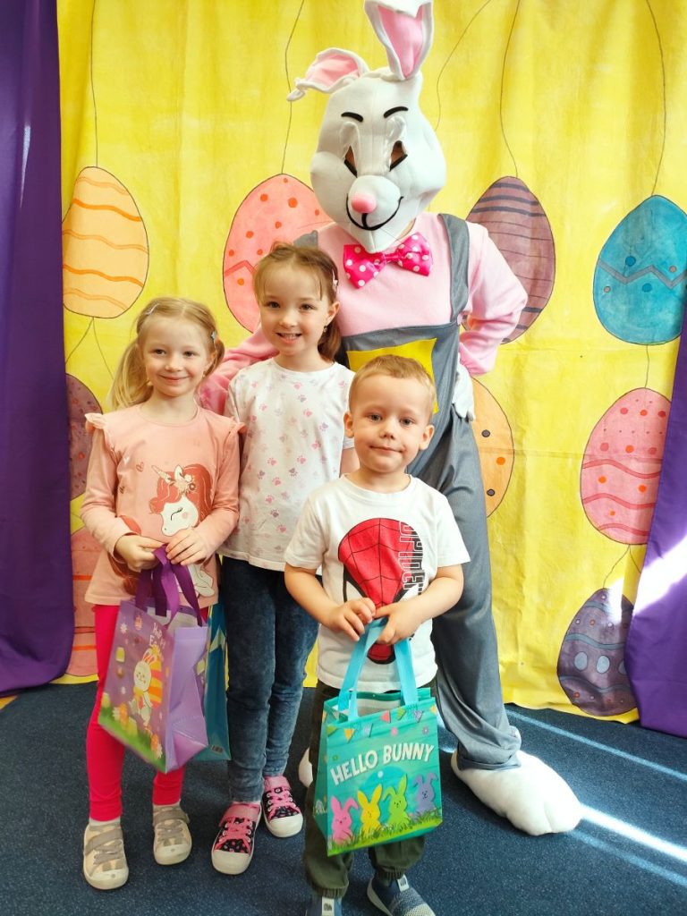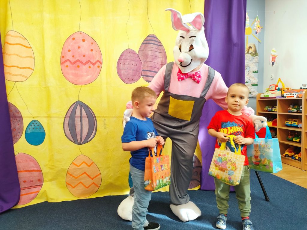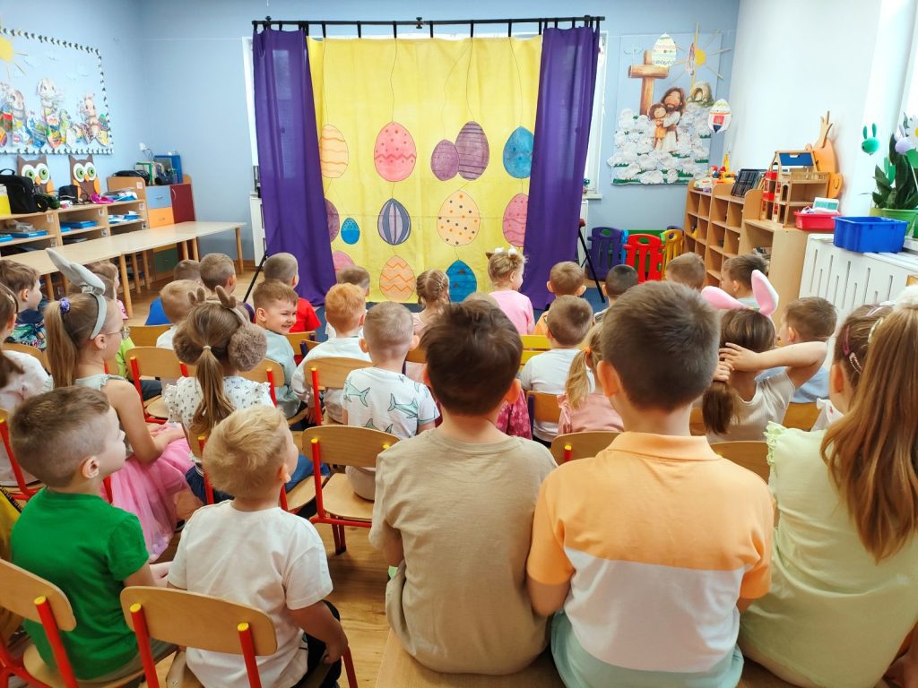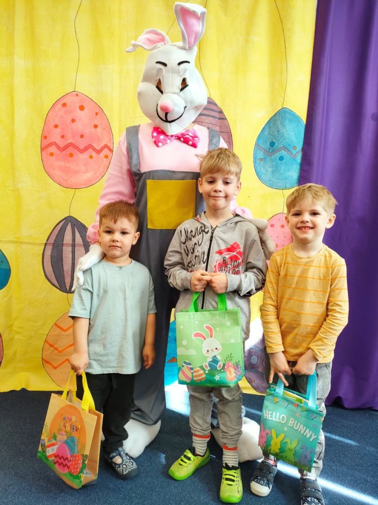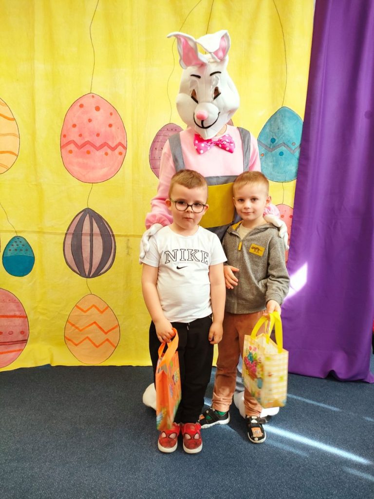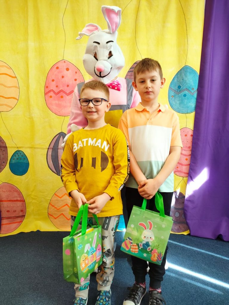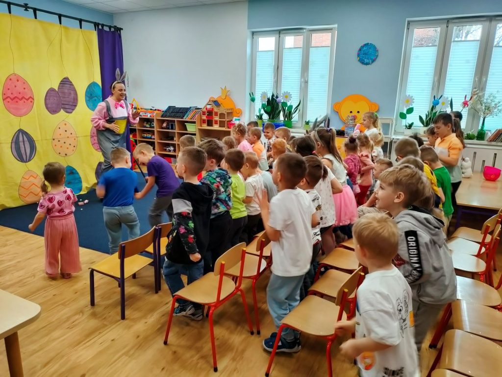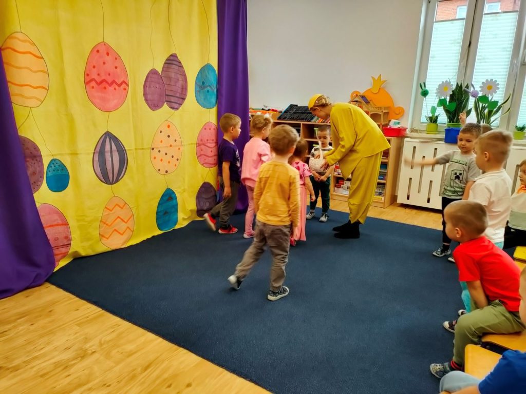 W dniu dzisiejszym mieliśmy przyjemność gościć Teatr Dwóch, który zaprezentował nam wspaniałe, ciekawe i pouczające przedstawienie pt. „Wielkanocna niespodzianka”. Podczas spektaklu nie zabrakło aktywności, które wciągnęły zarówno dzieci, jak i dorosłych. Aktorzy zadbali o to, by publiczność była nie tylko widzami, ale również uczestnikami wydarzeń na scenie. Dzięki temu wszyscy mieli okazję do wspólnej zabawy, śmiechu oraz nauki. Po przedstawieniu odwiedził nas długo oczekiwany gość – zajączek wielkanocny. 🐰Przybył do nas z koszykiem pełnym małych, ale niezwykle uroczych prezencików, które sprawiły radość każdemu z obecnych. Zajączek okazał się być nie tylko dostawcą prezentów, ale także wspaniałym kompanem do zabawy. Dzieci dowiedziały się więcej o tradycjach wielkanocnych, a także miały możliwość aktywnego uczestnictwa w przedstawieniu, co z pewnością wzbogaciło ich doświadczenie i wiedzę.☀️🌷