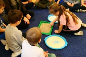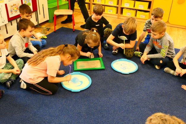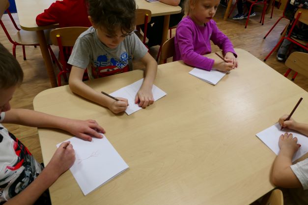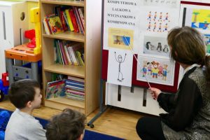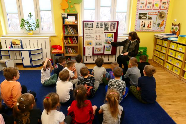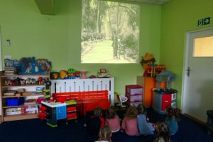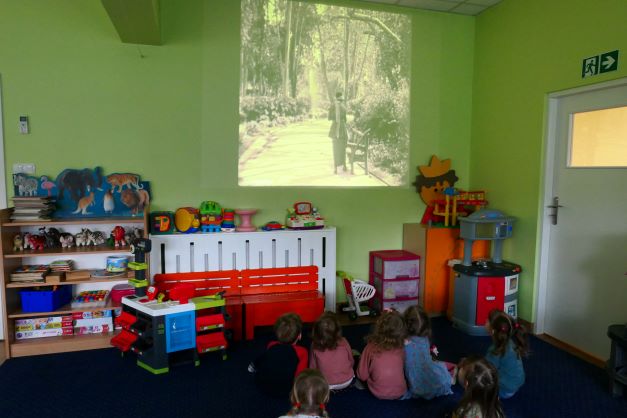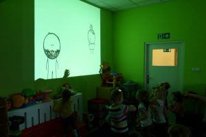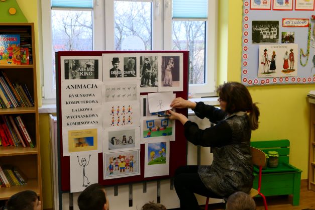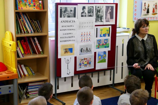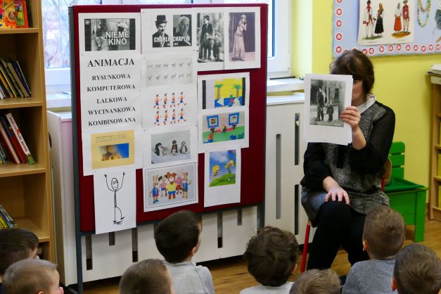 „W niemym kinie” to kolejny punkt projektu „Z kulturą mi do twarzy”, który realizujemy w naszym przedszkolu. Dzieci tego dnia poznały historię kina. Maluszki oglądały fragmenty filmu z udziałem Charliego Chaplina „Brzdąc”, filmu z 1921 roku oraz oglądały krótkie amatorskie animacje autorstwa Pani Mai. Starszaki z Panią Irką zgłębiły tajniki niemego kina i animacji, nawet podjęły próbę tworzenia swoich własnych.