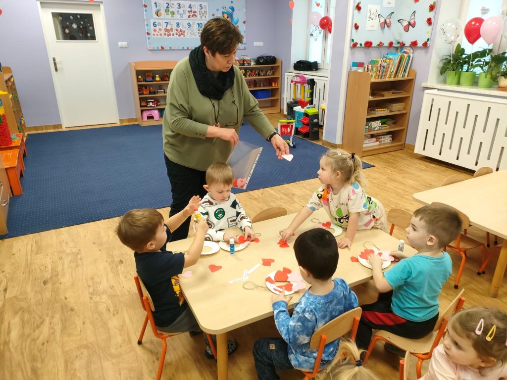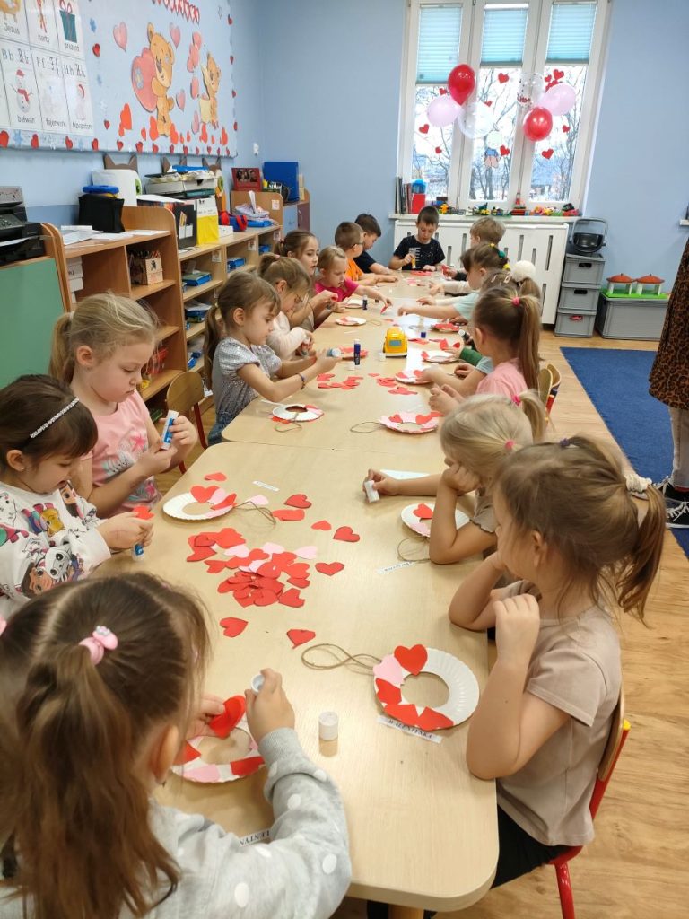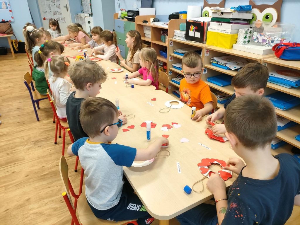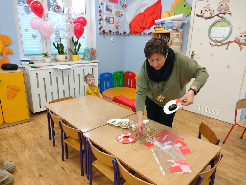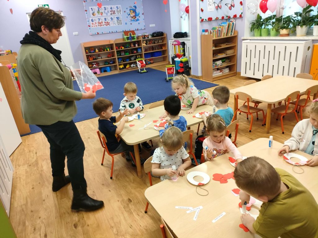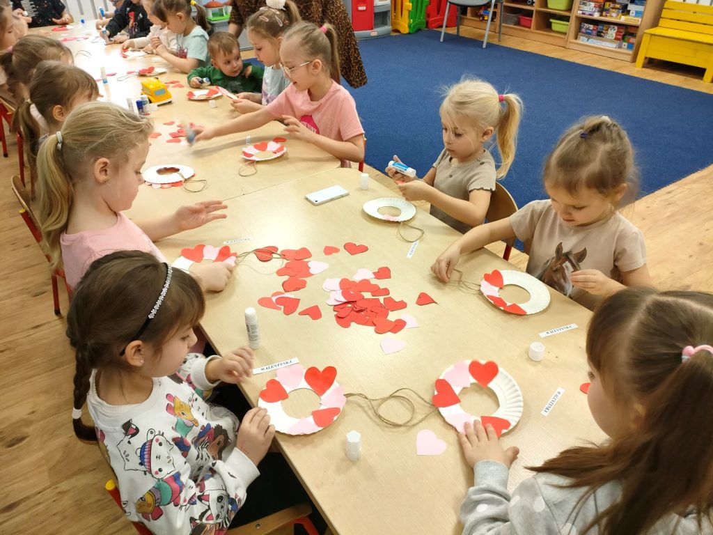 Dnia dzisiejszego, jak co środę, odwiedziła nas Pani Iwonka. Jest to zawsze wyjątkowy czas, kiedy możemy posłuchać ciekawych opowieści i zanurzyć się w świecie bajek. Tym razem, z okazji Walentynek, Pani Iwonka przygotowała dla nas dwie szczególne historie. Pierwszą bajką, którą usłyszeliśmy, była opowieść o Franklinie i walentynkach. Ta historia pokazała nam, jak ważne jest okazywanie uczuć i troski swoim przyjaciołom oraz rodzinie. Następnie Pani Iwonka przeczytała nam bajkę zatytułowaną „Felek i miłość – emocje”. Ta historia pozwoliła nam lepiej zrozumieć różne emocje, które towarzyszą miłości i przyjaźni. Po bajkach nadszedł czas na zabawy. Usiedliśmy w kole na dywanie i Pani Iwonka zaproponowała nam grę w dopasowywanie postaci z bajek do ich połówek. Było przy tym mnóstwo śmiechu i radości, a każdy z nas miał okazję wykazać się spostrzegawczością i pamięcią. Na zakończenie tego pełnego emocji i wrażeń dnia, przystąpiliśmy do wykonywania pięknych walentynek. Z kolorowych papierowych serduszek stworzyliśmy kartki, które później mogliśmy podarować naszym bliskim. Każda walentynka była wyjątkowa i niepowtarzalna, pełna dziecięcej fantazji i kreatywności. ❤️❤️