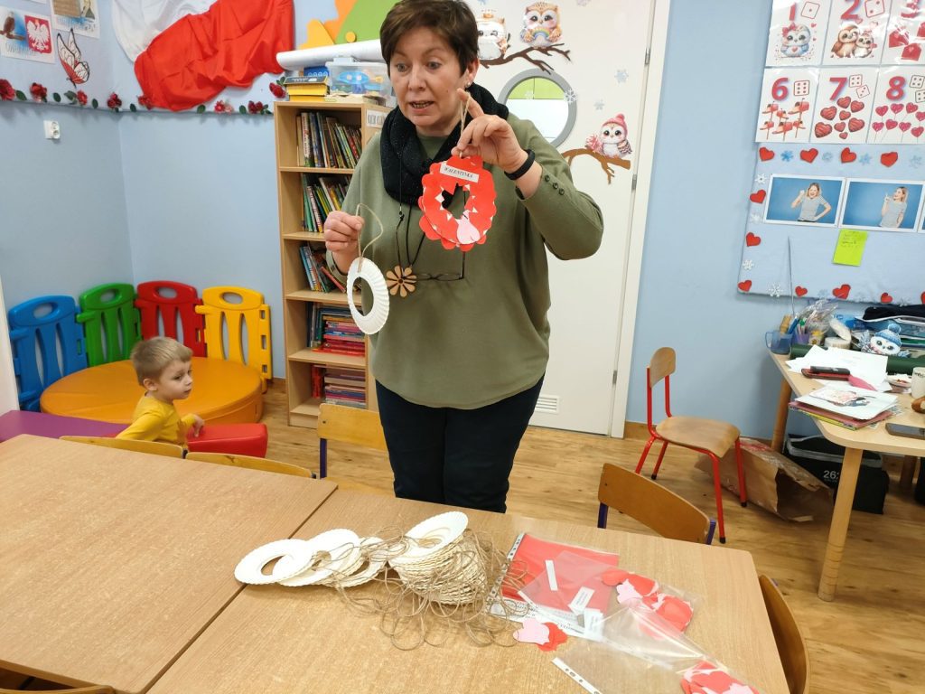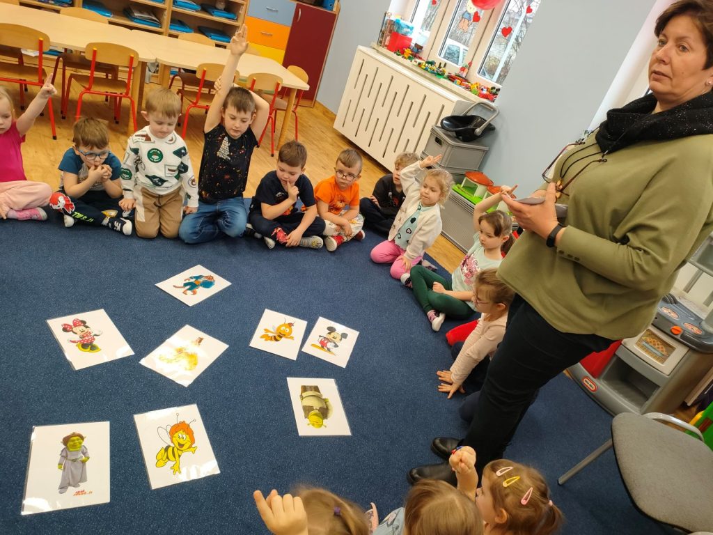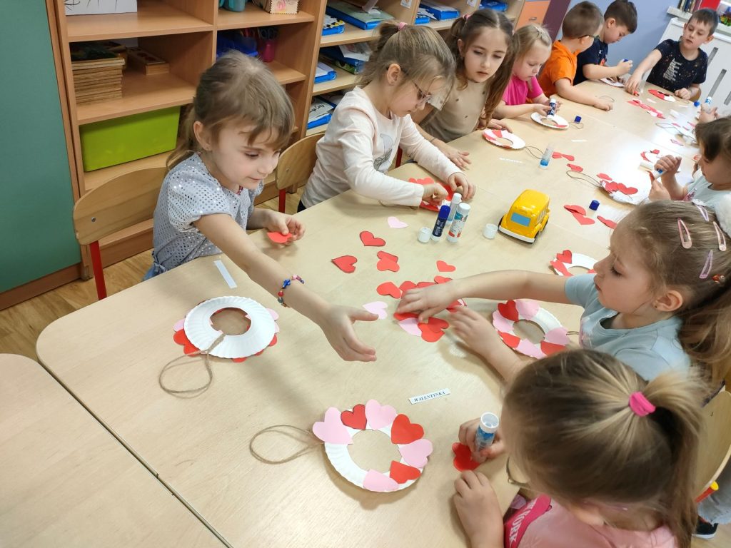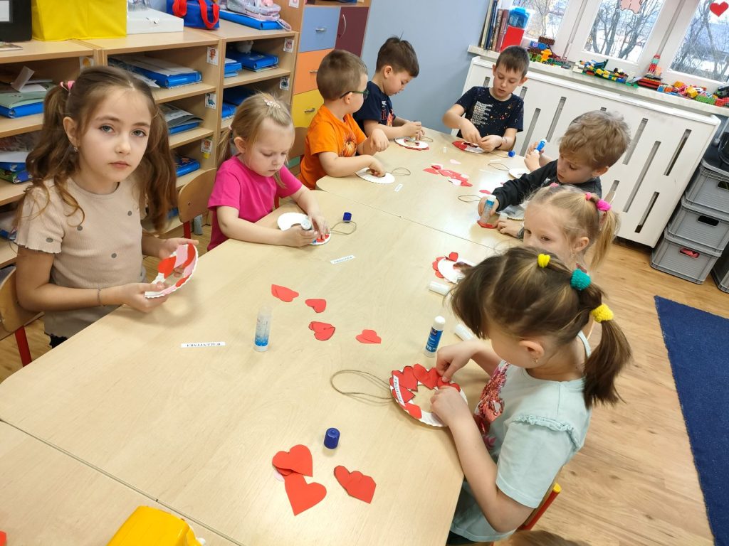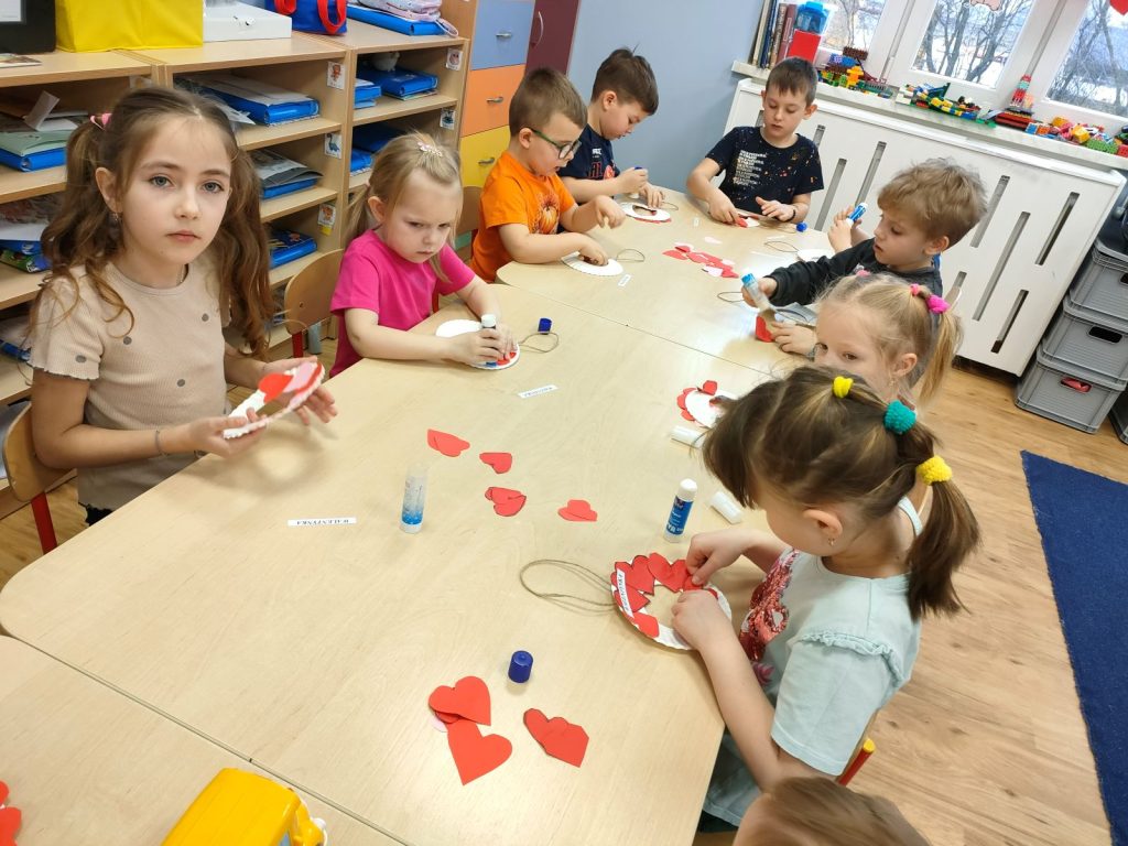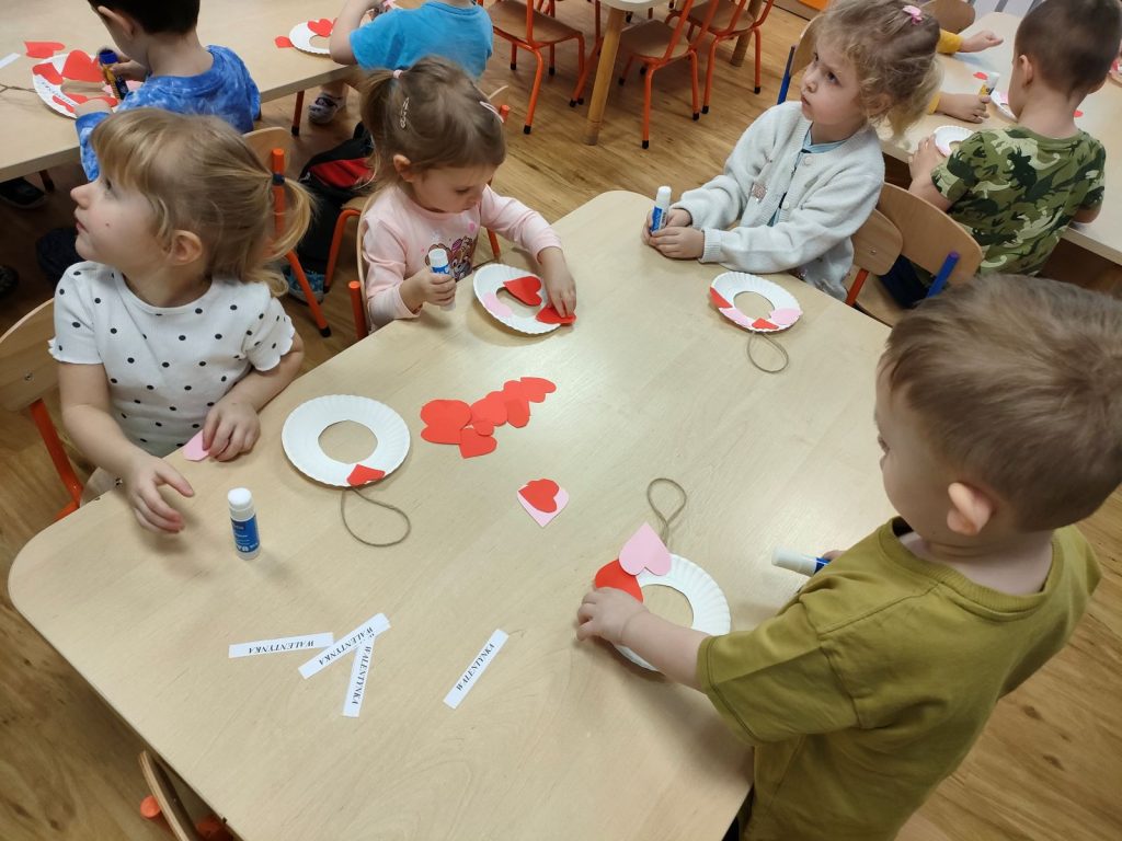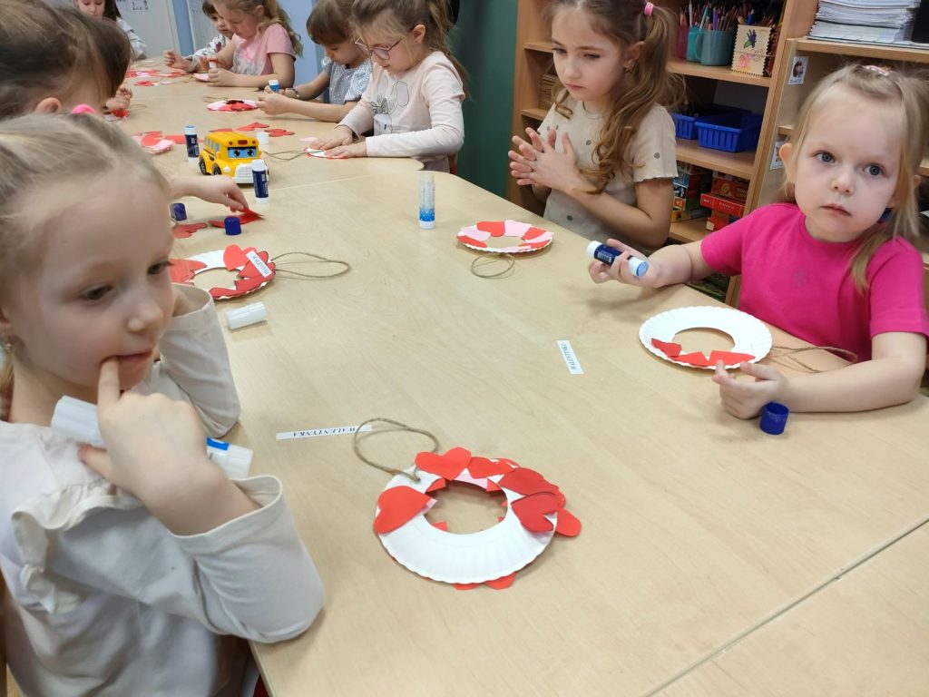 Dnia dzisiejszego, jak co środę, odwiedziła nas Pani Iwonka. Jest to zawsze wyjątkowy czas, kiedy możemy posłuchać ciekawych opowieści i zanurzyć się w świecie bajek. Tym razem, z okazji Walentynek, Pani Iwonka przygotowała dla nas dwie szczególne historie. Pierwszą bajką, którą usłyszeliśmy, była opowieść o Franklinie i walentynkach. Ta historia pokazała nam, jak ważne jest okazywanie uczuć i troski swoim przyjaciołom oraz rodzinie. Następnie Pani Iwonka przeczytała nam bajkę zatytułowaną „Felek i miłość – emocje”. Ta historia pozwoliła nam lepiej zrozumieć różne emocje, które towarzyszą miłości i przyjaźni. Po bajkach nadszedł czas na zabawy. Usiedliśmy w kole na dywanie i Pani Iwonka zaproponowała nam grę w dopasowywanie postaci z bajek do ich połówek. Było przy tym mnóstwo śmiechu i radości, a każdy z nas miał okazję wykazać się spostrzegawczością i pamięcią. Na zakończenie tego pełnego emocji i wrażeń dnia, przystąpiliśmy do wykonywania pięknych walentynek. Z kolorowych papierowych serduszek stworzyliśmy kartki, które później mogliśmy podarować naszym bliskim. Każda walentynka była wyjątkowa i niepowtarzalna, pełna dziecięcej fantazji i kreatywności. ❤️❤️