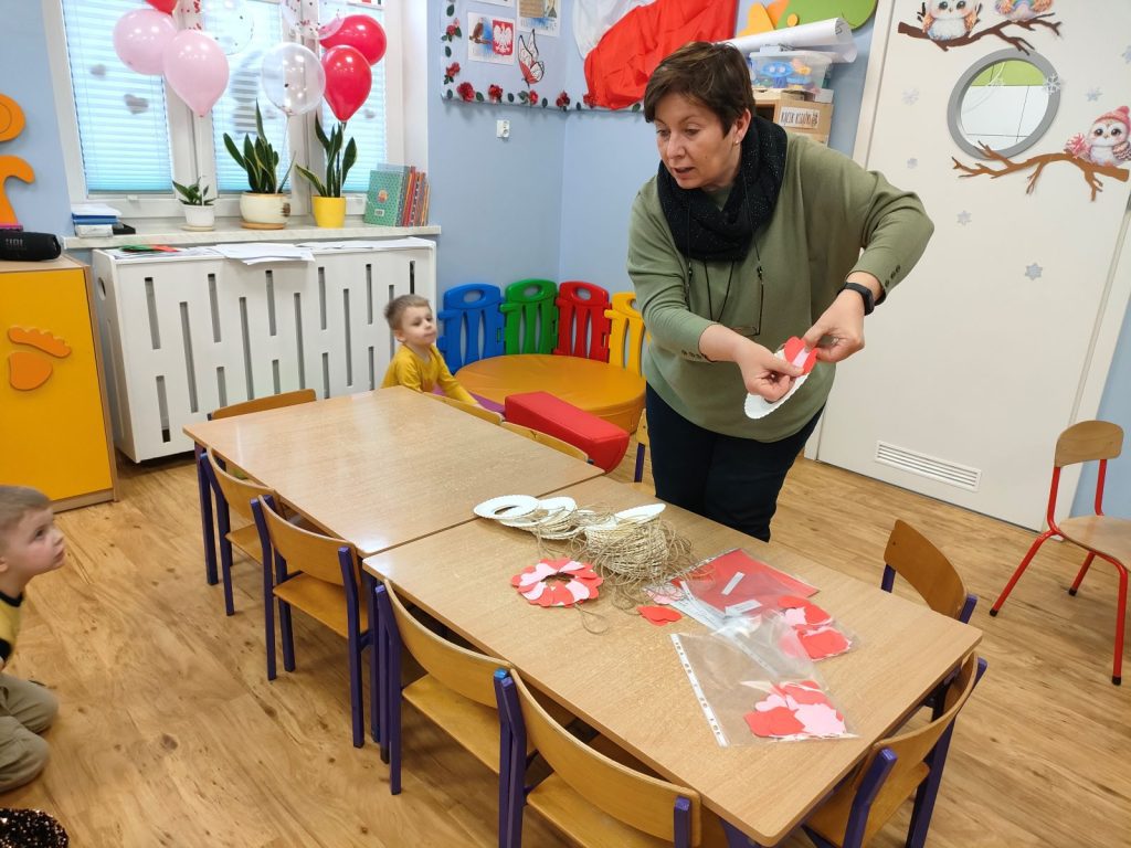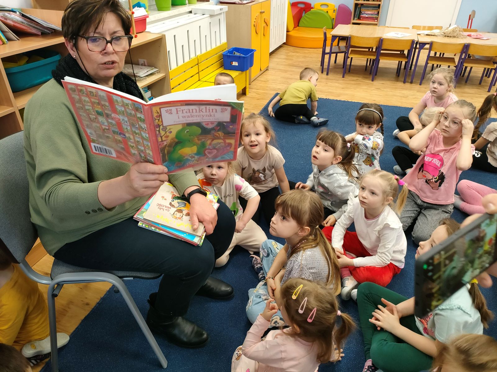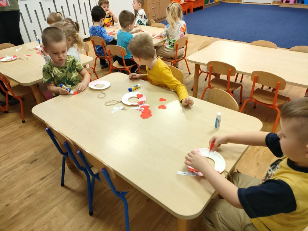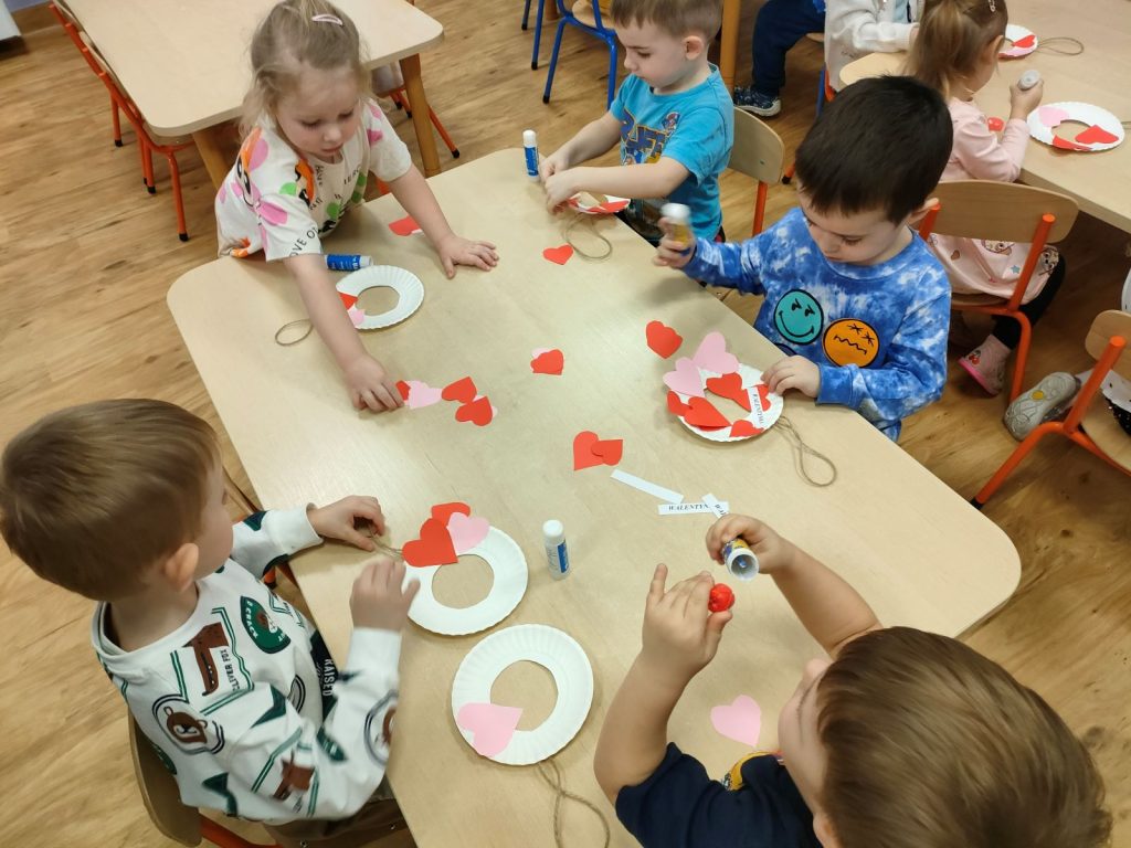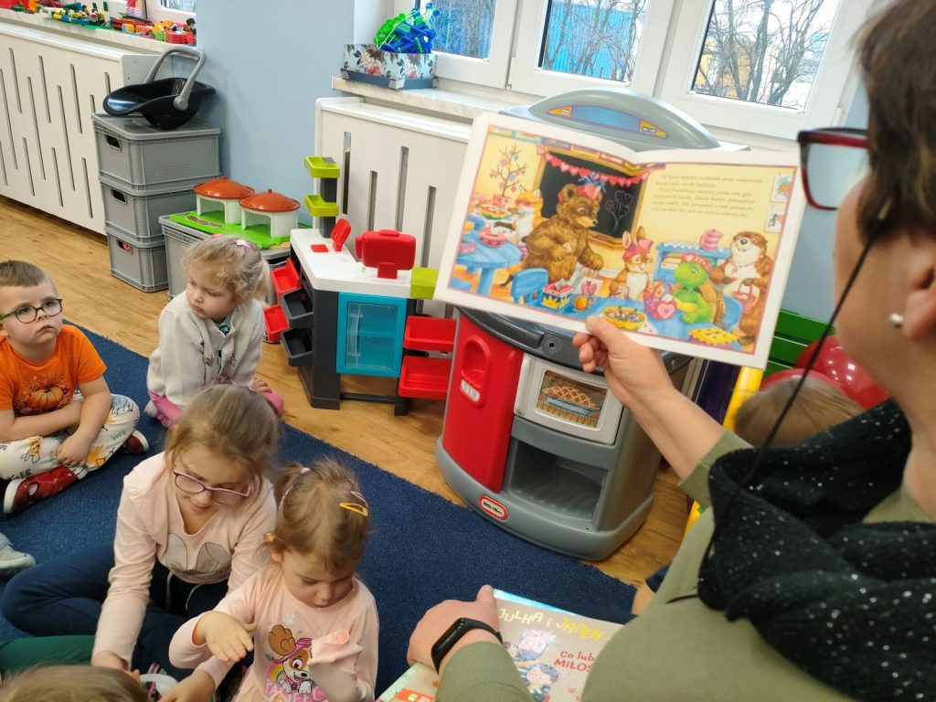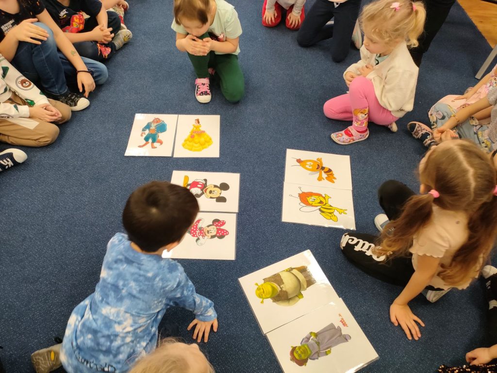 Dnia dzisiejszego, jak co środę, odwiedziła nas Pani Iwonka. Jest to zawsze wyjątkowy czas, kiedy możemy posłuchać ciekawych opowieści i zanurzyć się w świecie bajek. Tym razem, z okazji Walentynek, Pani Iwonka przygotowała dla nas dwie szczególne historie. Pierwszą bajką, którą usłyszeliśmy, była opowieść o Franklinie i walentynkach. Ta historia pokazała nam, jak ważne jest okazywanie uczuć i troski swoim przyjaciołom oraz rodzinie. Następnie Pani Iwonka przeczytała nam bajkę zatytułowaną „Felek i miłość – emocje”. Ta historia pozwoliła nam lepiej zrozumieć różne emocje, które towarzyszą miłości i przyjaźni. Po bajkach nadszedł czas na zabawy. Usiedliśmy w kole na dywanie i Pani Iwonka zaproponowała nam grę w dopasowywanie postaci z bajek do ich połówek. Było przy tym mnóstwo śmiechu i radości, a każdy z nas miał okazję wykazać się spostrzegawczością i pamięcią. Na zakończenie tego pełnego emocji i wrażeń dnia, przystąpiliśmy do wykonywania pięknych walentynek. Z kolorowych papierowych serduszek stworzyliśmy kartki, które później mogliśmy podarować naszym bliskim. Każda walentynka była wyjątkowa i niepowtarzalna, pełna dziecięcej fantazji i kreatywności. ❤️❤️