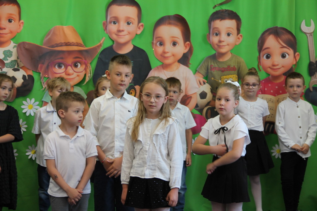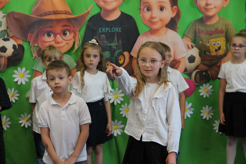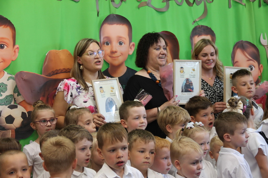 Uroczystość otworzyła Pani Dyrektor, kierując serdeczne i ciepłe słowa do przedszkolaków. Nie zabrakło podziękowań skierowanych do naszych gości – Pana Tomasza Tomalaka, Dyrektora Szkoły, Pani Małgorzaty Pietrzak, która już wkrótce poprowadzi nową klasę pierwszą oraz Pani Iwonki Jankowskiej, z którą od lat łączy nas piękna współpraca. Szczególne podziękowania popłynęły również do rodziców – za obecność, zaangażowanie i nieocenione wsparcie.